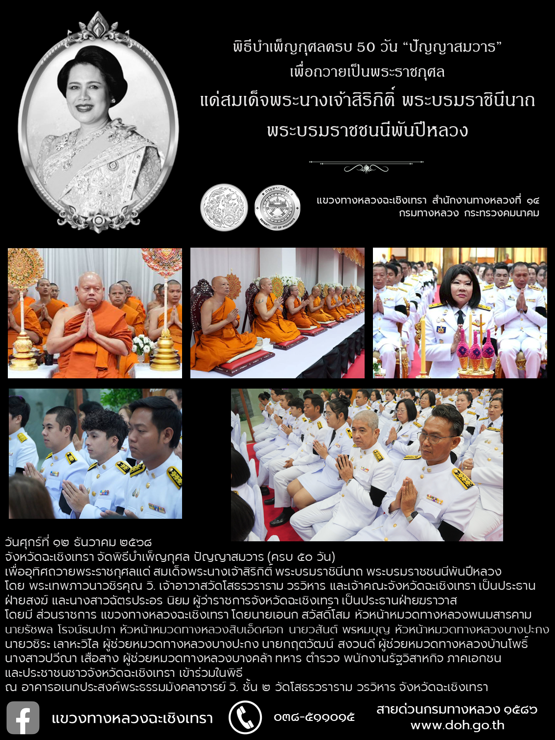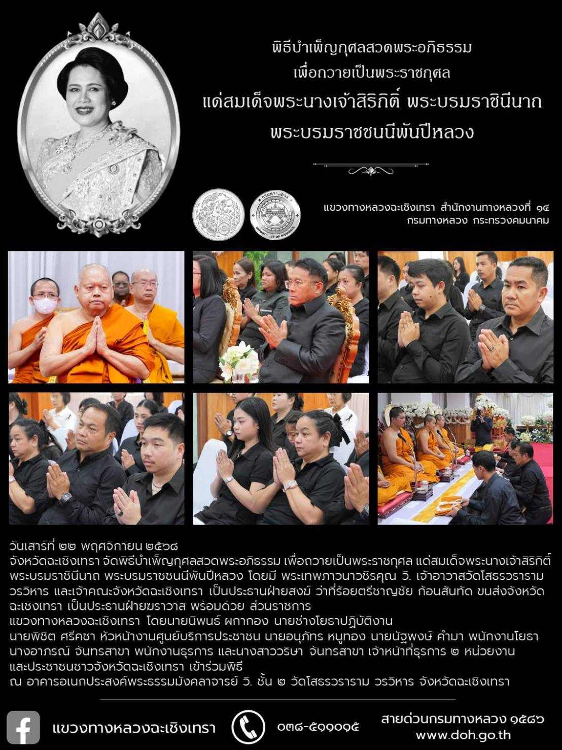11 22/11/2568 พิธีบำเพ็ญกุศลสวดพระอภิธรรม เพื่อถวายเป็นพระราชกุศล แด่สมเด็จพระนางเจ้าสิริกิติ์ พระบรมราชินีนาถ พระบรมราชชนนีพันปีหลวง จังหวัดฉะเชิงเทรา