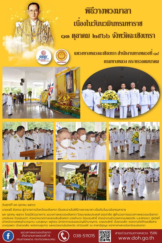 พิธีวางพวงมาลา เนื่องในวันนวมินทรมหาราช ๑๓ ตุลาคม ๒๕๖๖ จังหวัดฉะเชิงเทรา |