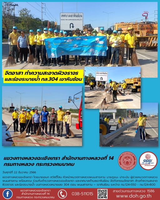 จิตอาสา ทำความสะอาดผิวจราจร และร่องระบายน้ำ บนทางหลวงหมายเลข 304 เขาหินซ้อน |