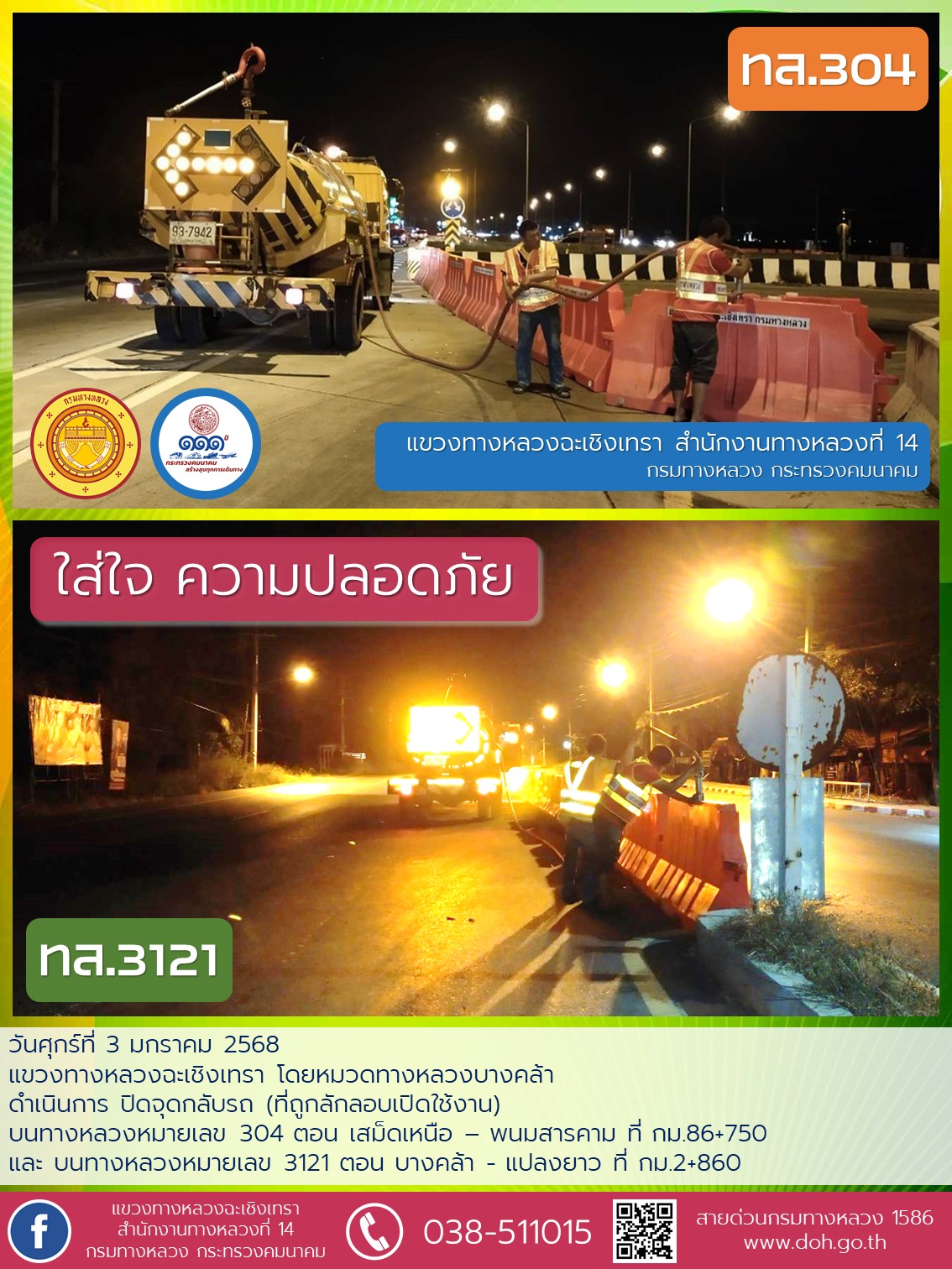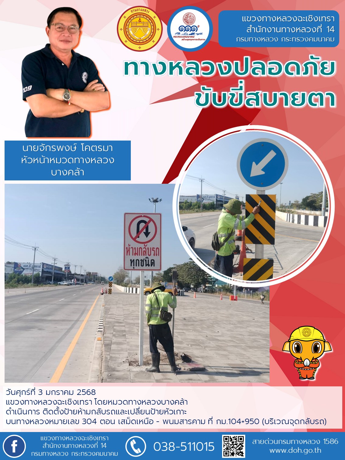 ติดตั้งป้ายห้ามกลับรถและเปลี่ยนป้ายหัวเกาะ |