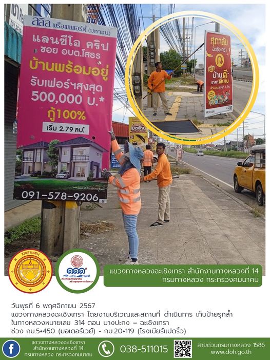ตัดหญ้าและเก็บขยะในเขตทางหลวง |