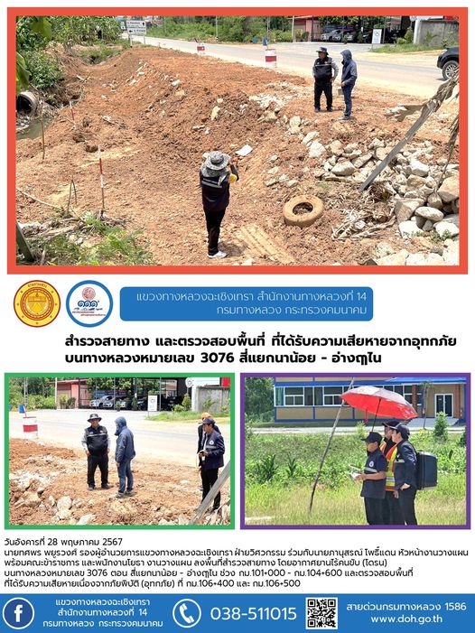 สำรวจสายทางและตรวจสอบพื้นที่ ที่ได้รับความเสียหายจากอุทกภัย |