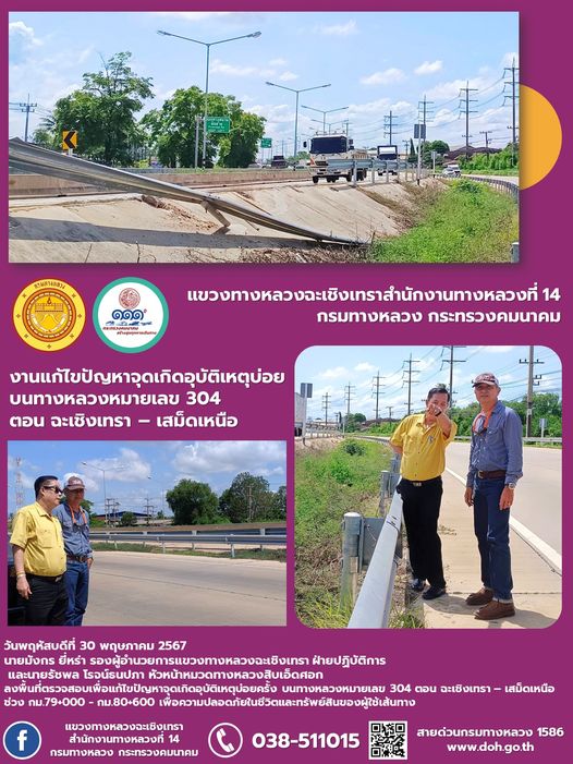 งานแก้ไขปัญหาจุดเกิดอุบัติเหตุบ่อยครั้ง บน ทล.304 |