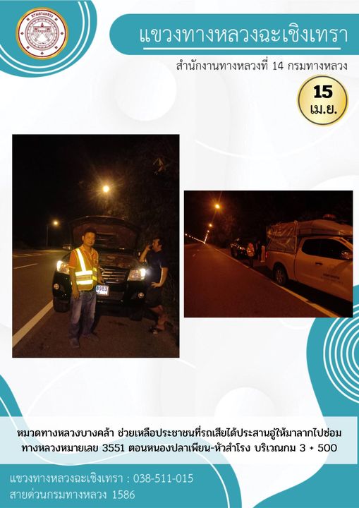 ช่วยเหลือประชาชนที่รถเสียได้ประสานอู่ให้มาลากไปซ่อมทล.3551 |