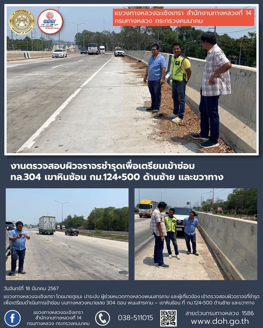 ตรวจสอบผิวจราจรที่ชำรุด |