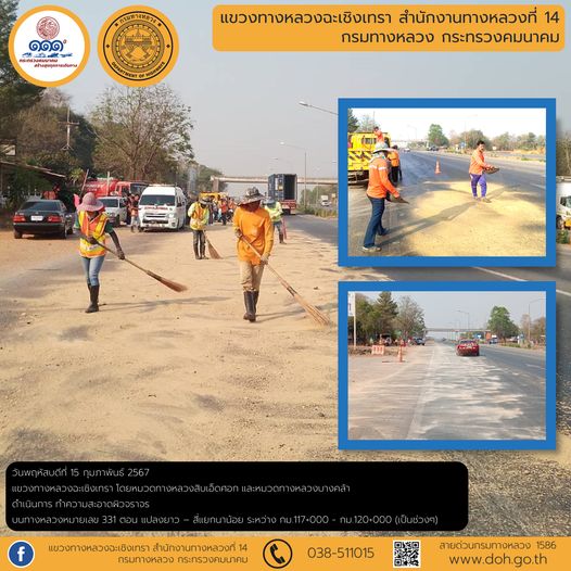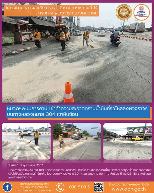 ทำความสะอาดคราบน้ำมันที่รั่วไหลลงผิวจราจร |
