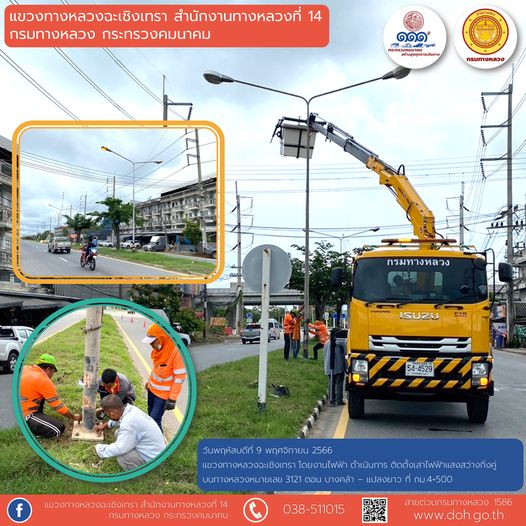 ติดตั้งเสาไฟฟ้าแสงสว่างกิ่งคู่ |