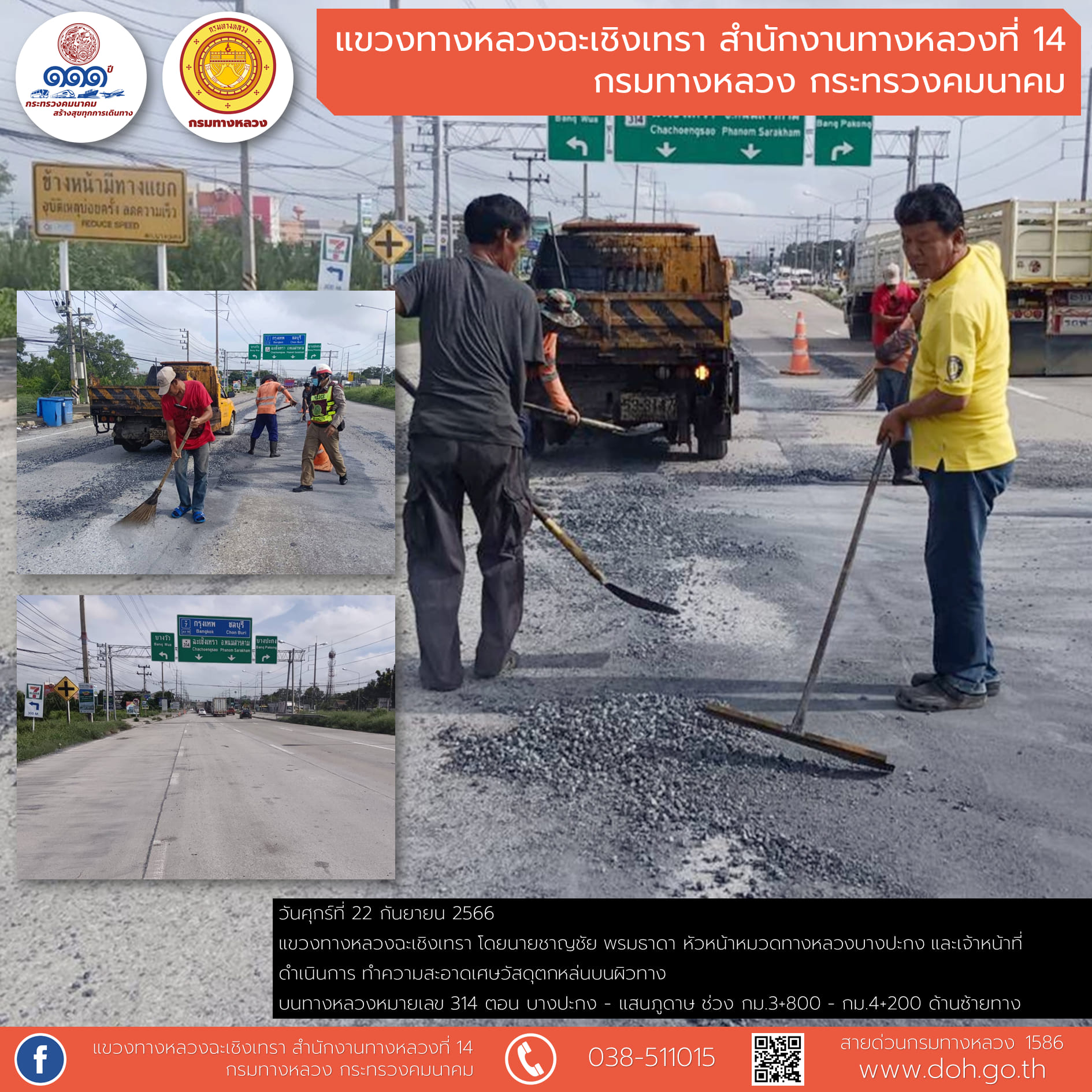 2357 22/09/2566 ทำความสะอาดเศษวัสดุตกหล่นบนผิวทาง