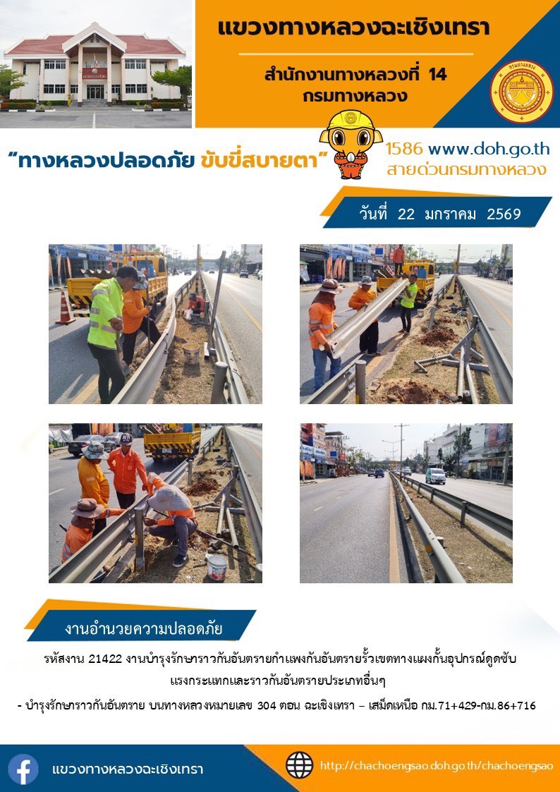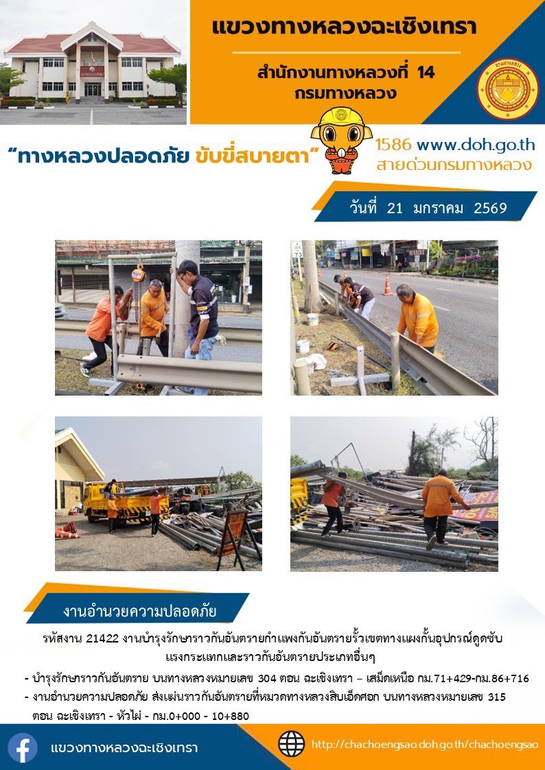 672 21/01/2569 งานบำรุงรักษาราวกันอันตรายกำเเพงอันตรายรั้วเขตทางเเผงกั้นอุปกรณ์ดูดซับ
