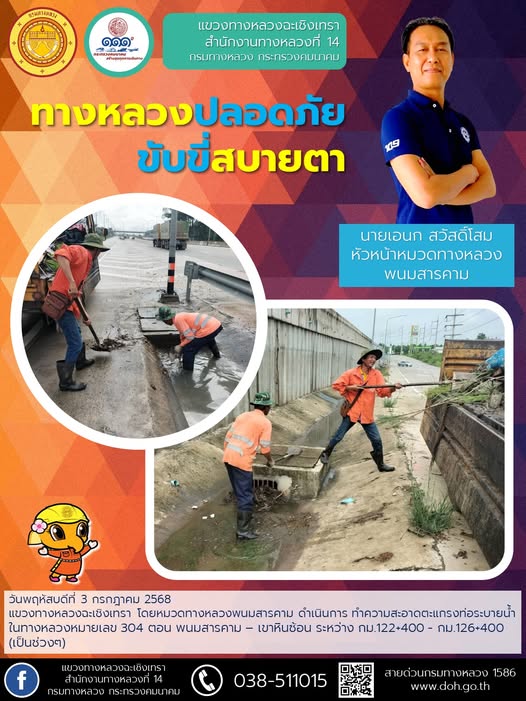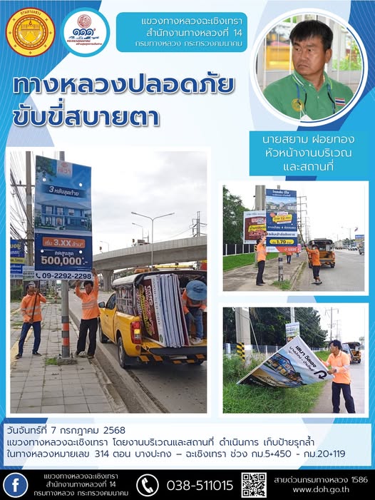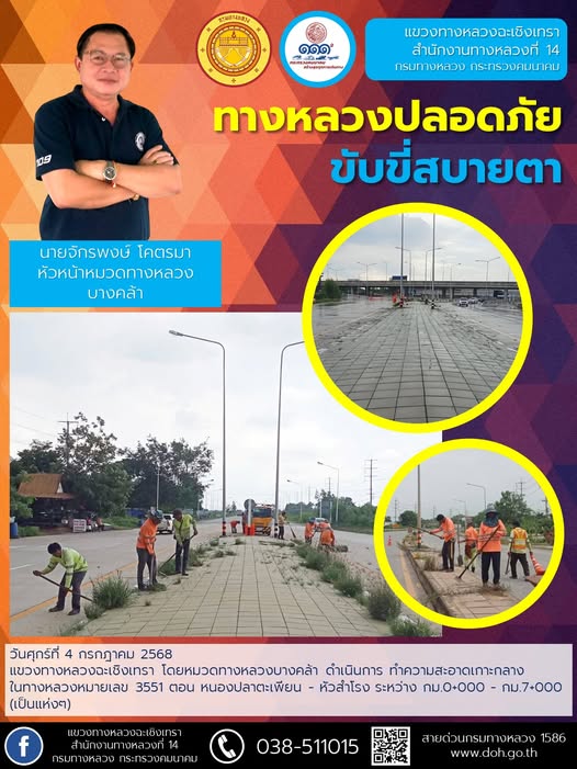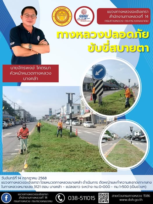 ตัดหญ้าและทำความสะอาดเกาะกลาง |
