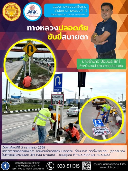 ติดตั้งป้ายเตือน (จุดกลับรถ) |