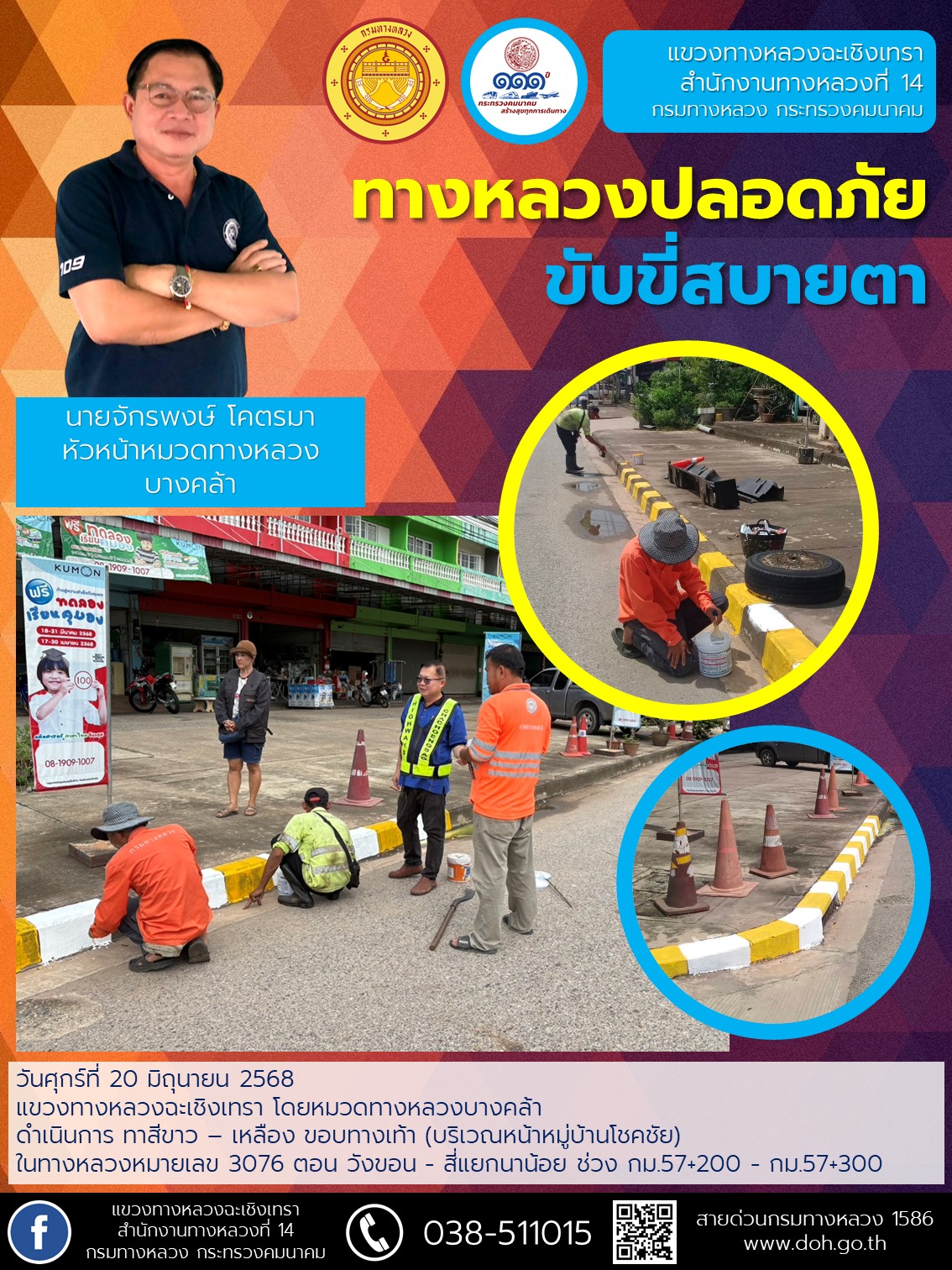 ทาสีขาว – เหลือง ขอบทางเท้า |