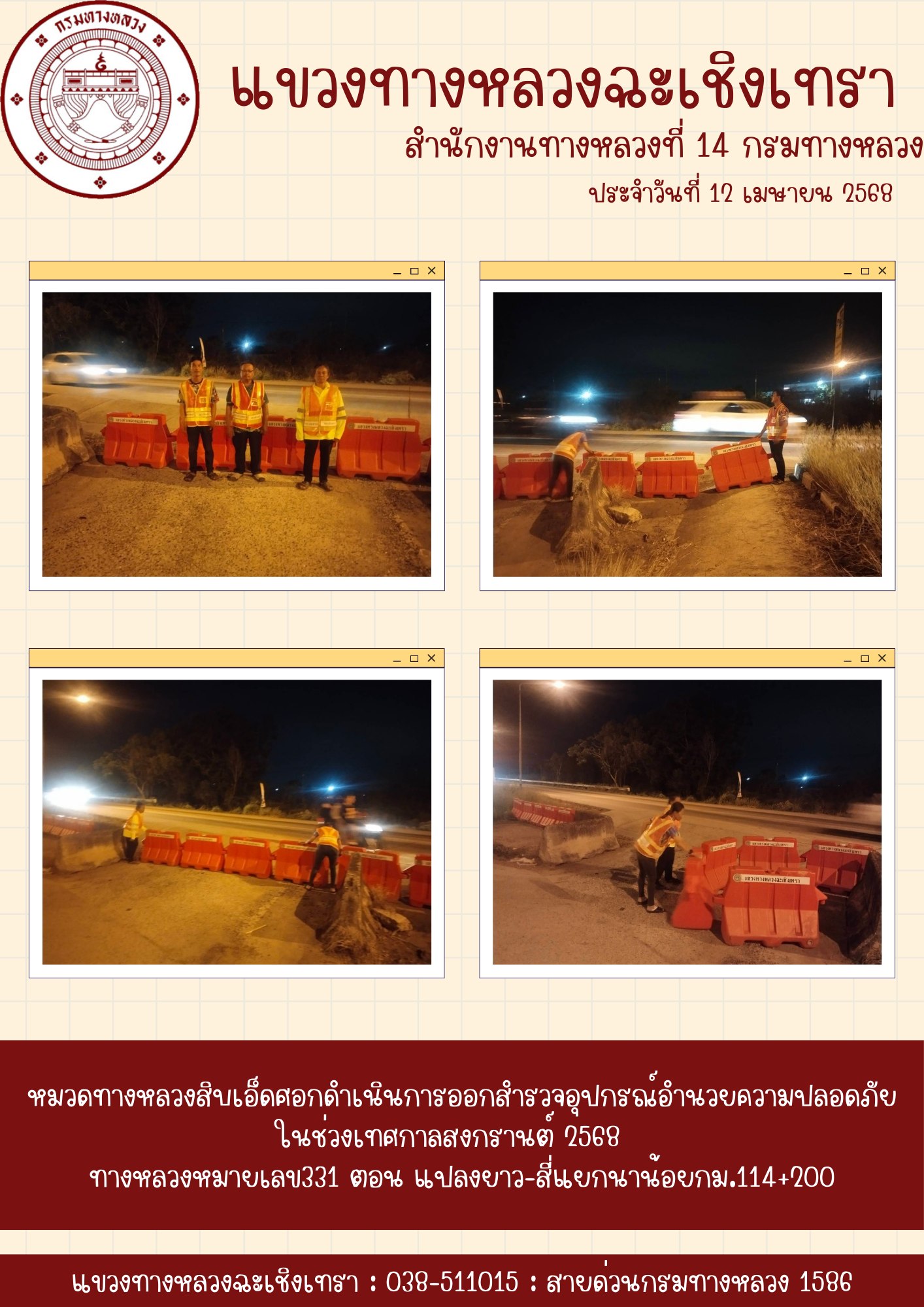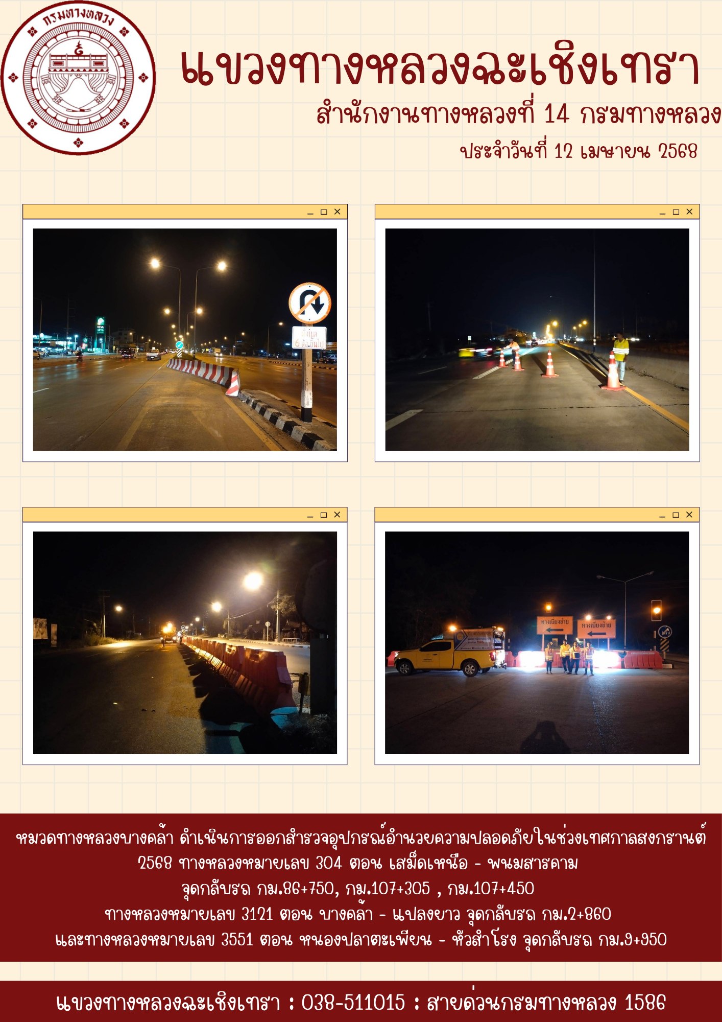 ออกสำรวจอุปกรณ์อำนวยความปลอดภัยในช่วงเทศกาลสงกรานต์ 2568 |