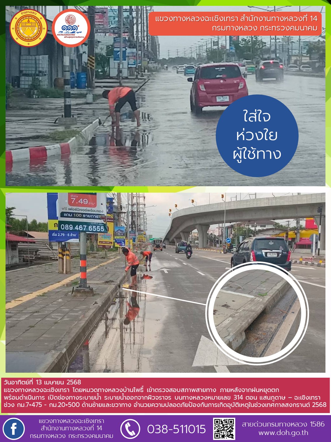 ตรวจสอบสภาพสายทางภายหลังจากฝนหยุดตก |