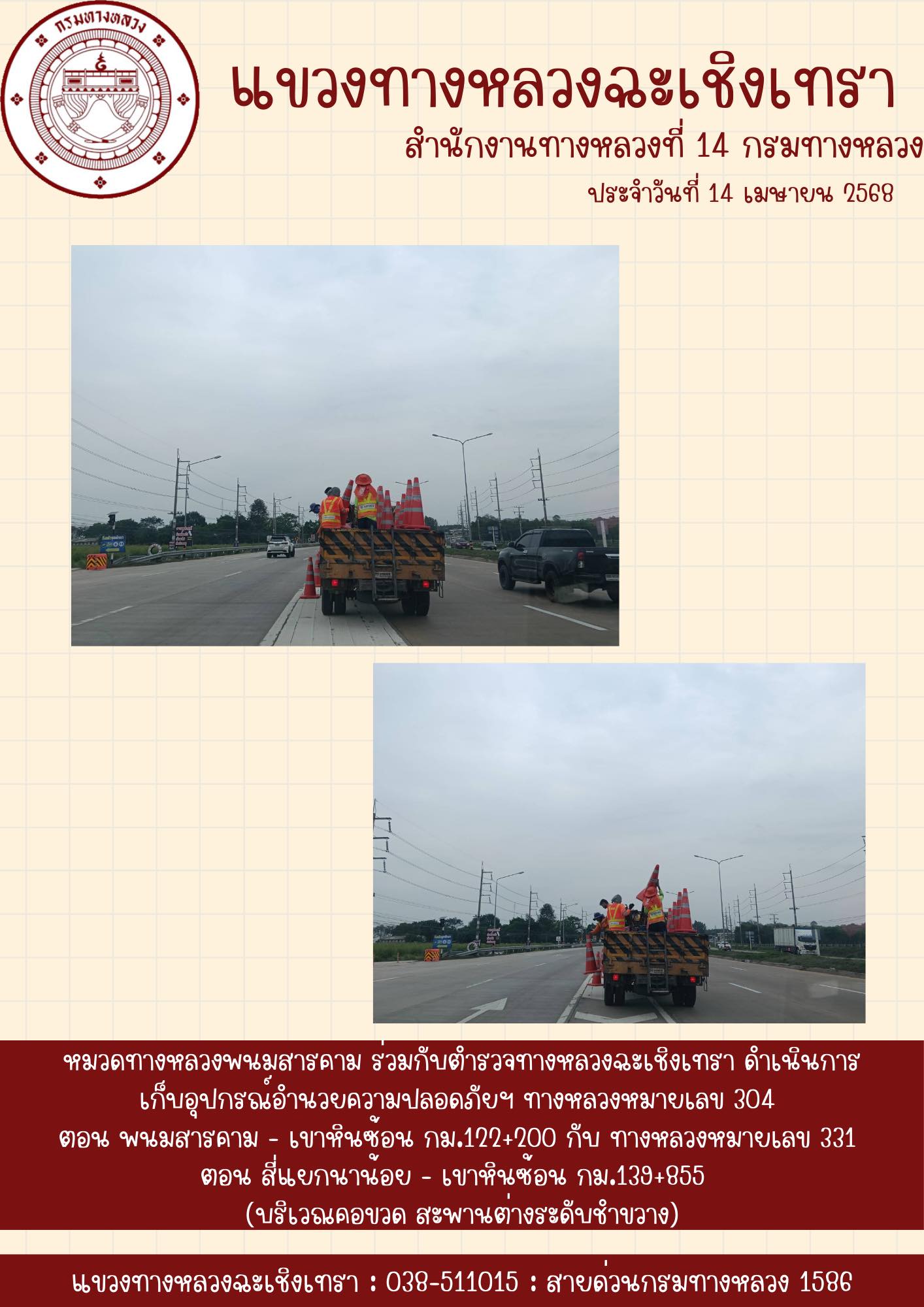 งานบริหารจัดการจราจร บนทางหลวงหมายเลข 304 และ 331 |