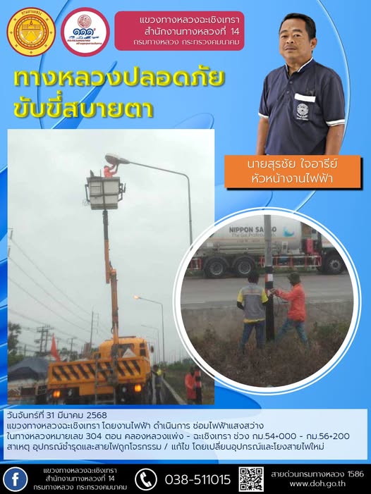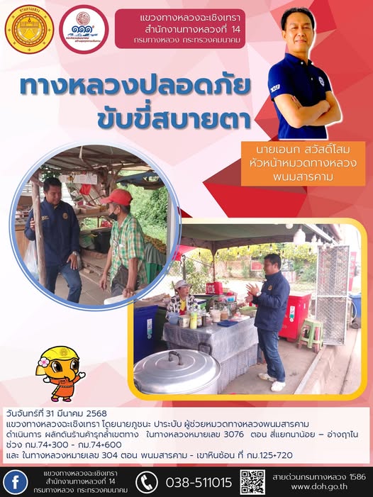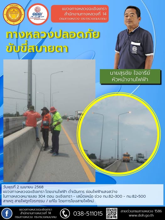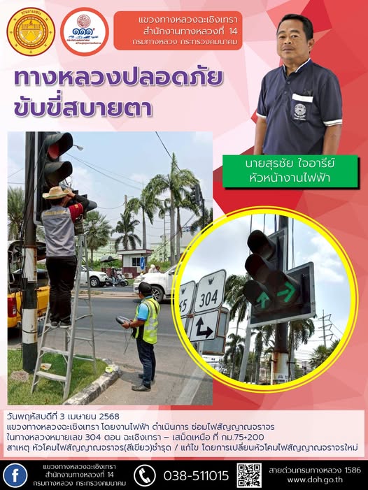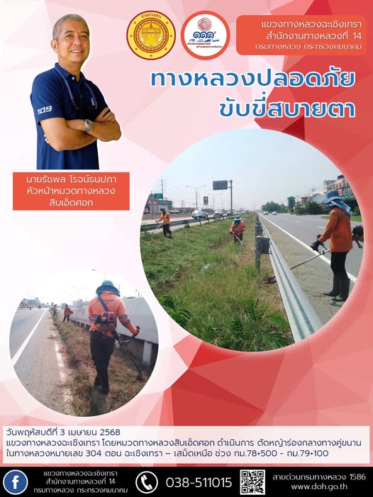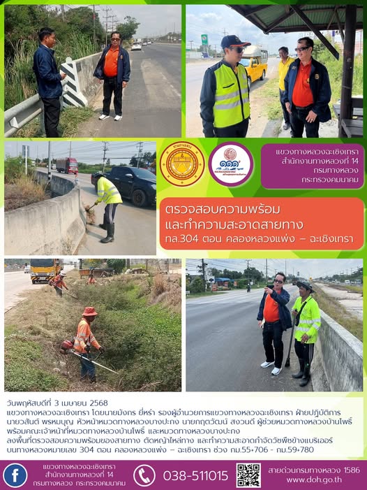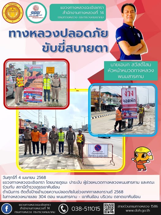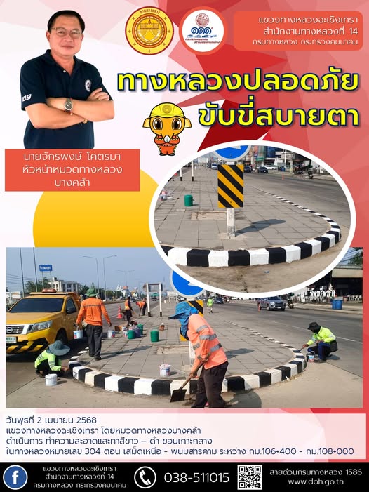 ปิดจุดกลับรถ บนทางหลวงหมายเลข 304 ช่วงเทศกาลสงกรานต์ 2568 |