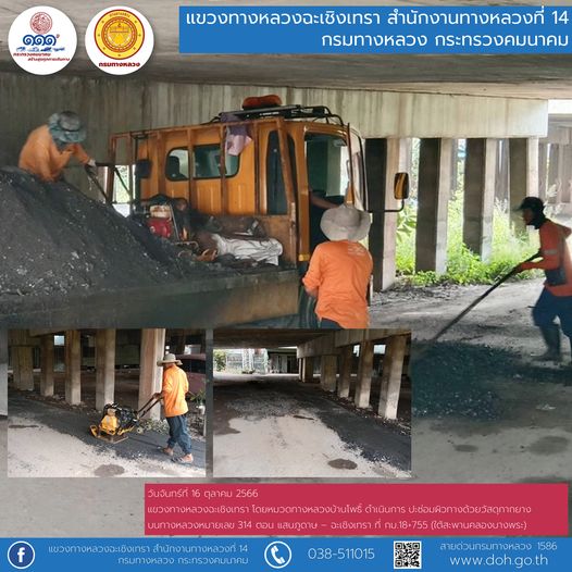 งานซ่อมผิวทางด้วยวัสดุกากยาง ทล.314 บริเวณใต้สะพานคลองบางพระ โดยหมวดทางหลวงบ้านโพธิ์
