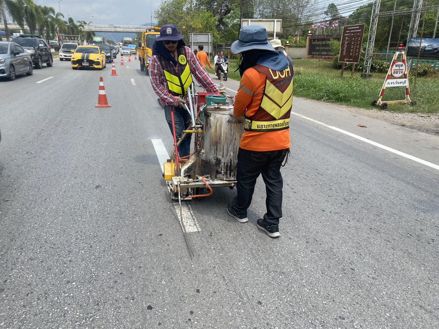 งานอำนวยความปลอดภัย แขวงทางหลวงจันทบุรี ดำเนินการตีเส้นจราจรในทางหลวงหมายเลข 3