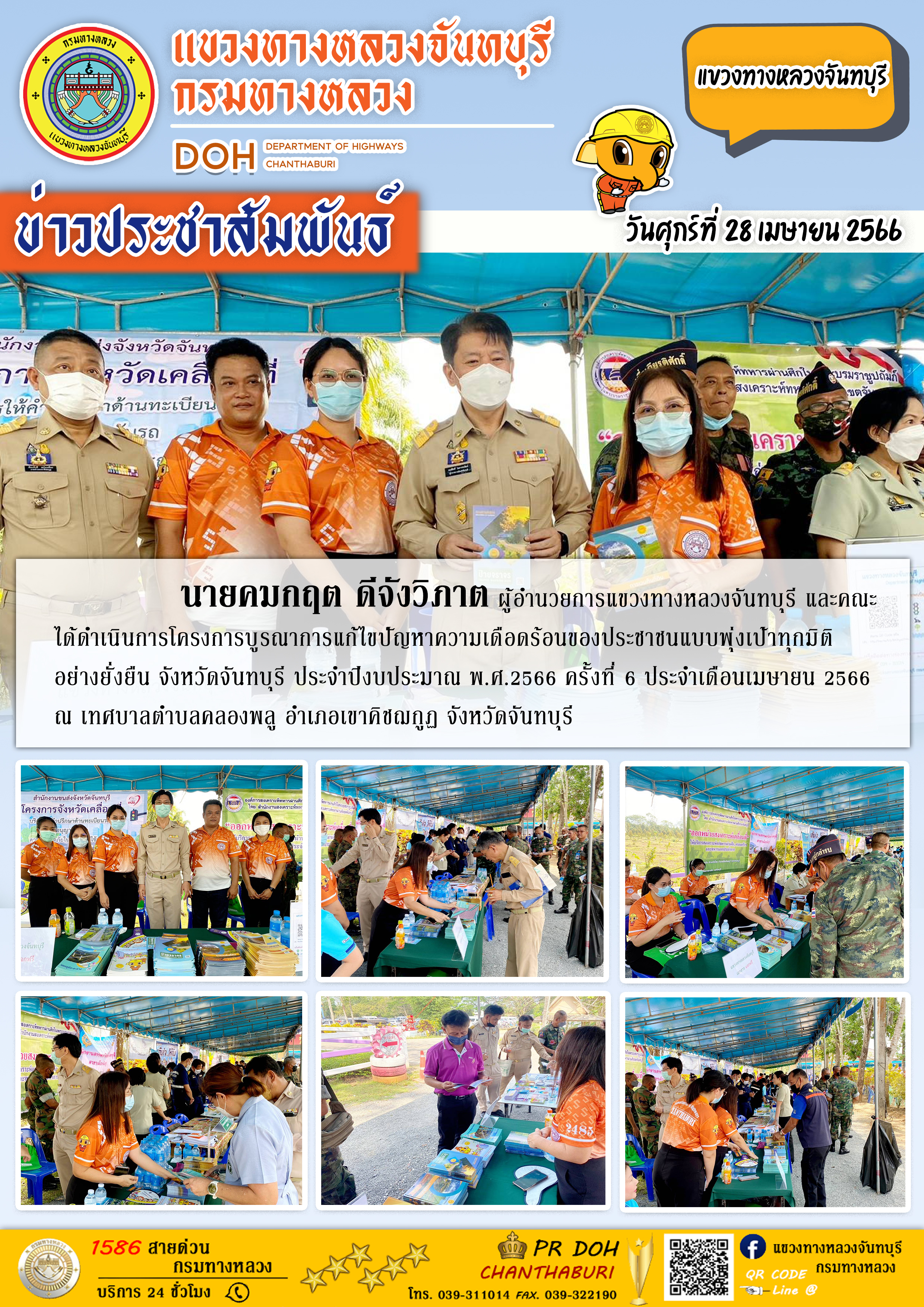 แขวงทางหลวงจันทบุรี ได้ดำเนินการโครงการบูรณาการแก้ไขปัญหาความเดือดร้อนของประชาชนแบบพุ่งเป้าทุกมิติ อย่างยั่งยืน จังหวัดจันทบุรี ประจำปีงบประมาณ พ.ศ.2566 ครั้งที่ 6 ประจำเดือนเมษายน 2566