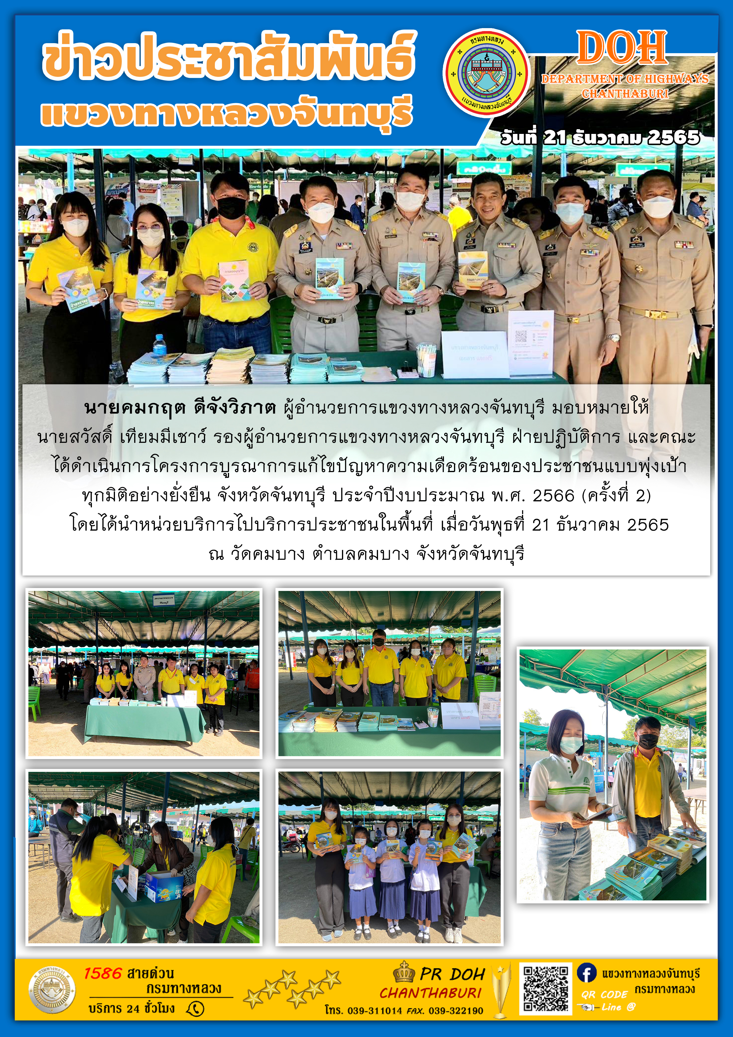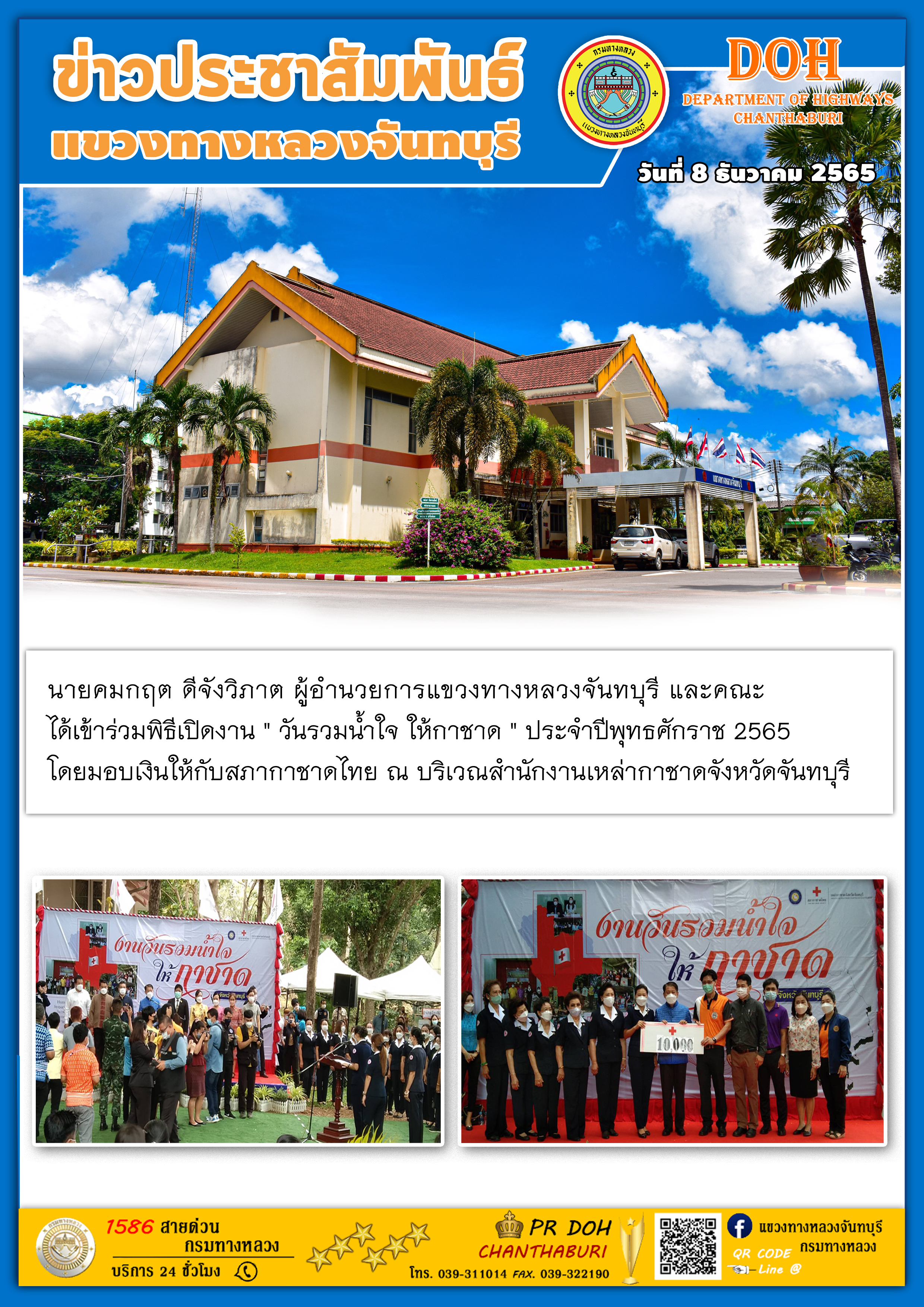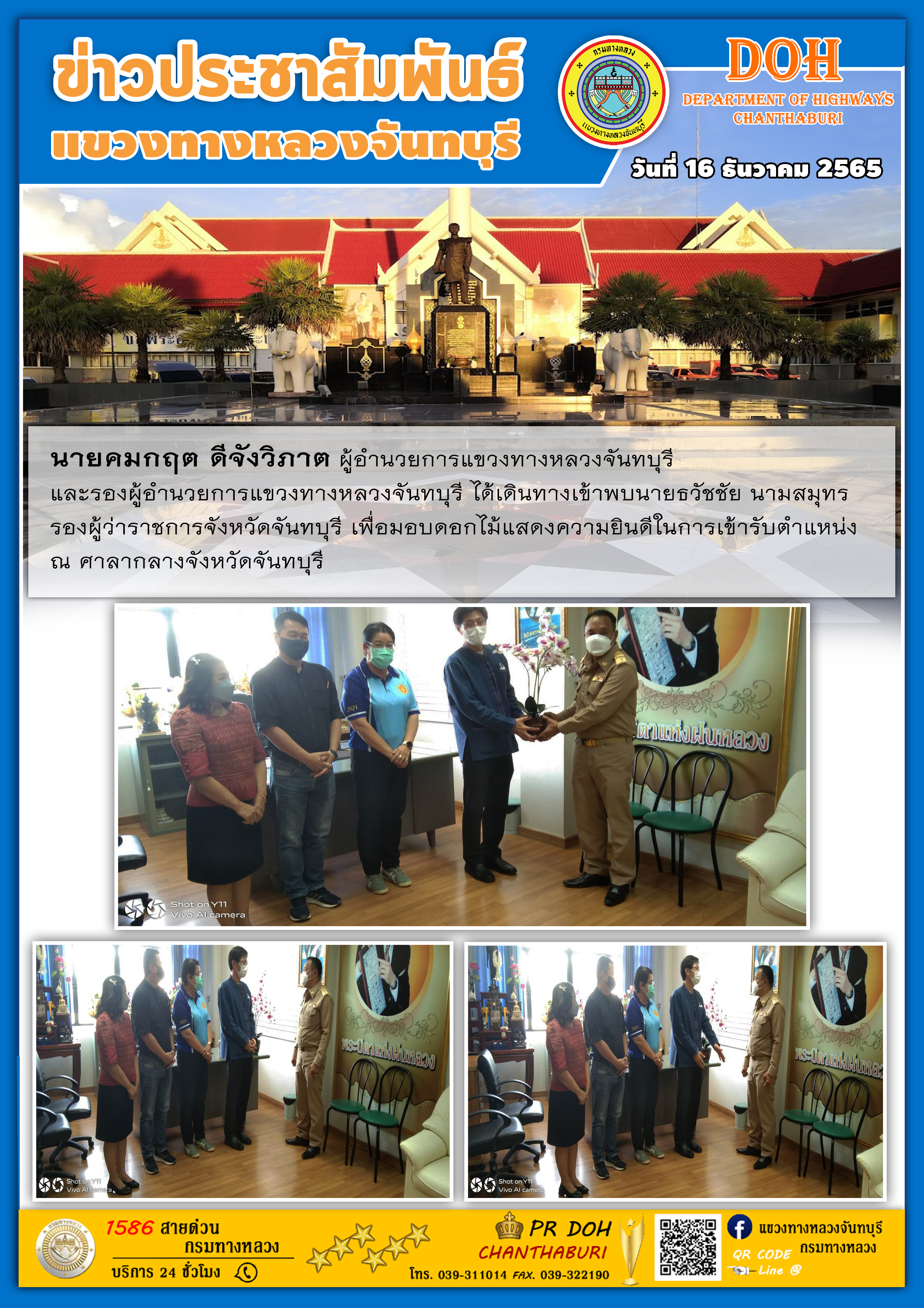 แขวงทางหลวงจันทบุรี ได้เดินทางเข้าพบนายวิสุทธิ์ ประกอบความดี รองผู้ว่าราชการจังหวัดจันทบุรี เพื่อมอบดอกไม้แสดงความยินดีในการเข้ารับตำแหน่ง