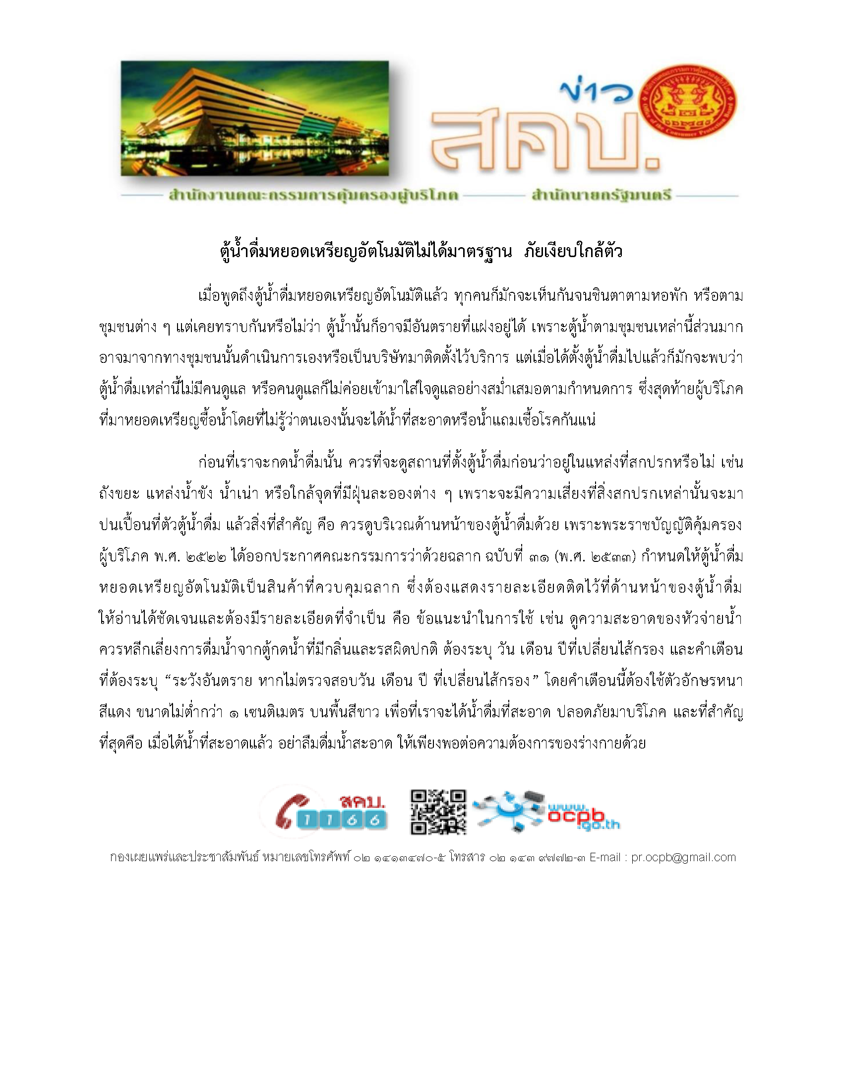 ตู้น้ำดื่มหยอดเหรียญอัตโนมัติ ภัยเงียบ |