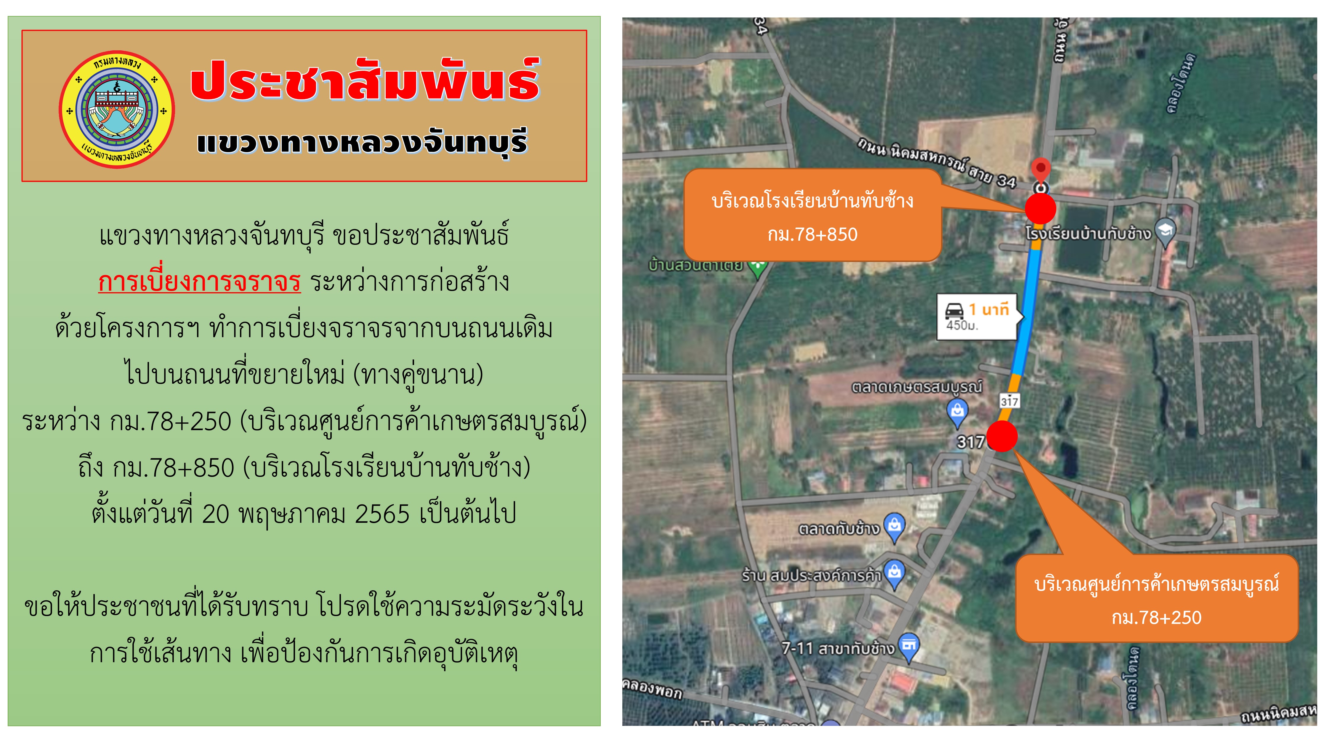 การเบี่ยงการจราจร ระหว่างการก่อสร้างทางหลวงหมายเลข 317 สายจันทบุรี - สระแก้ว |