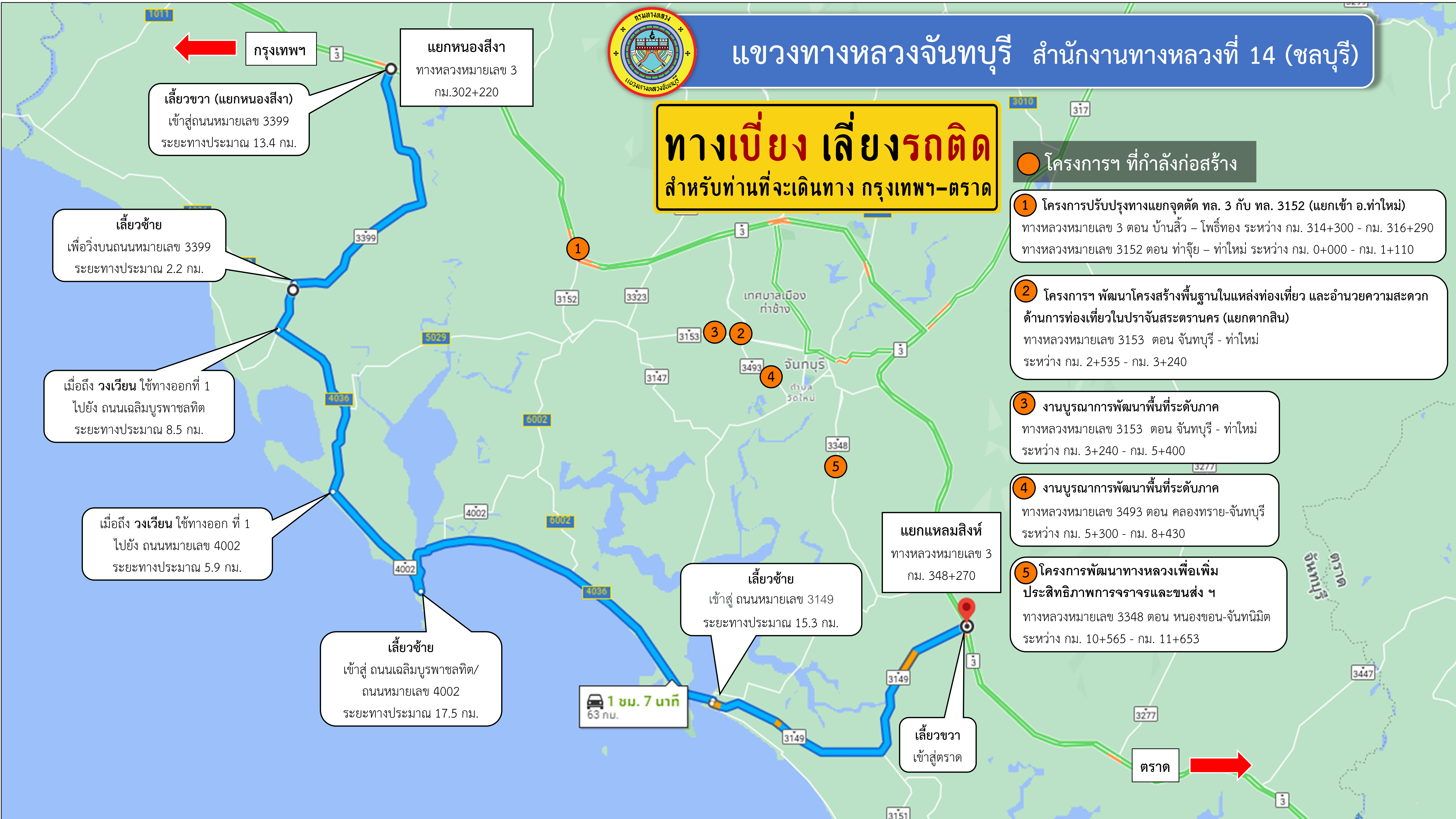 ทางเบี่ยง เลี่ยงรถติด กรุงเทพฯ-ตราด |