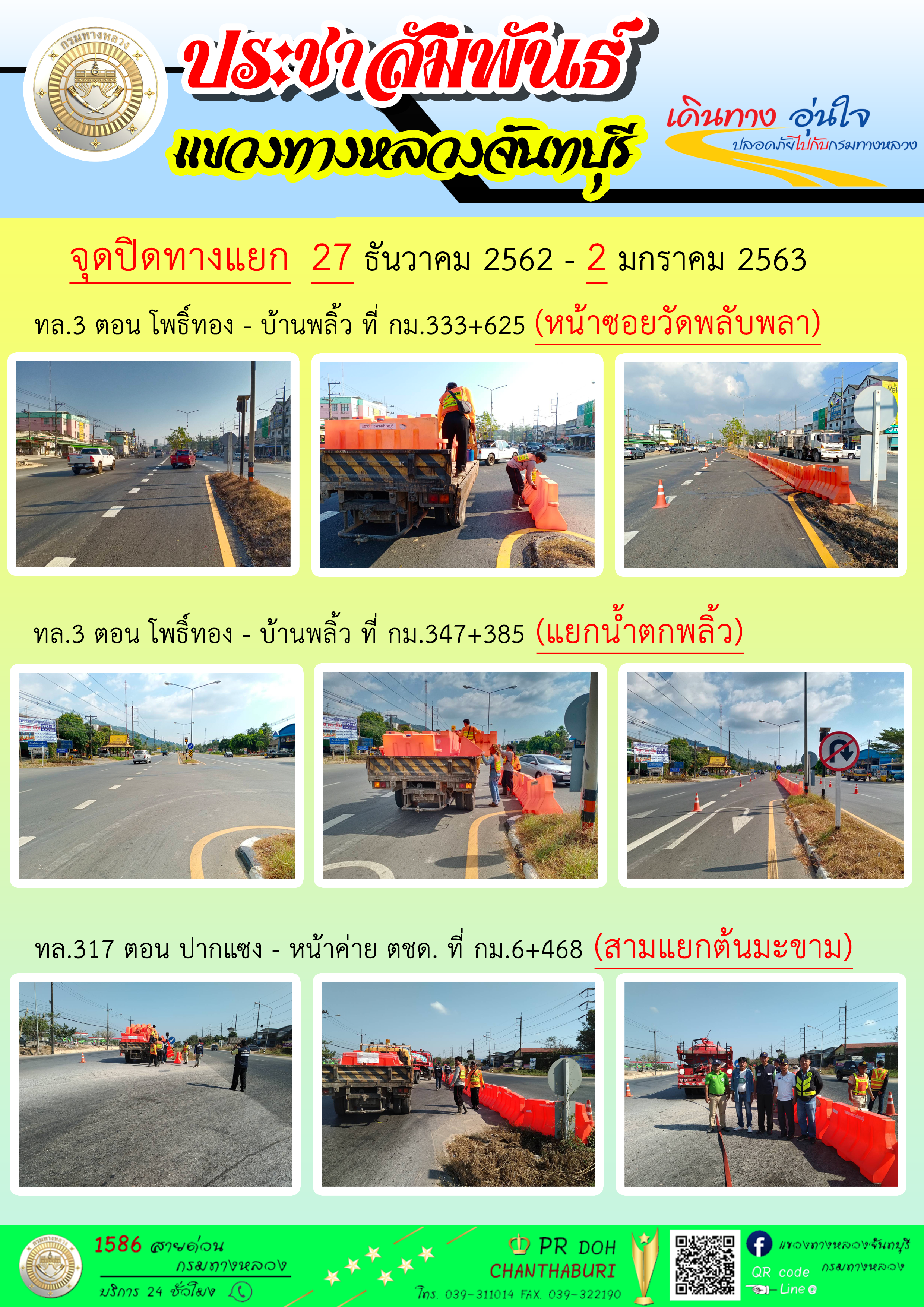 ปิดจุดกลับรถ 27 ธ.ค. 63 ถึง 2 ม.ค.63