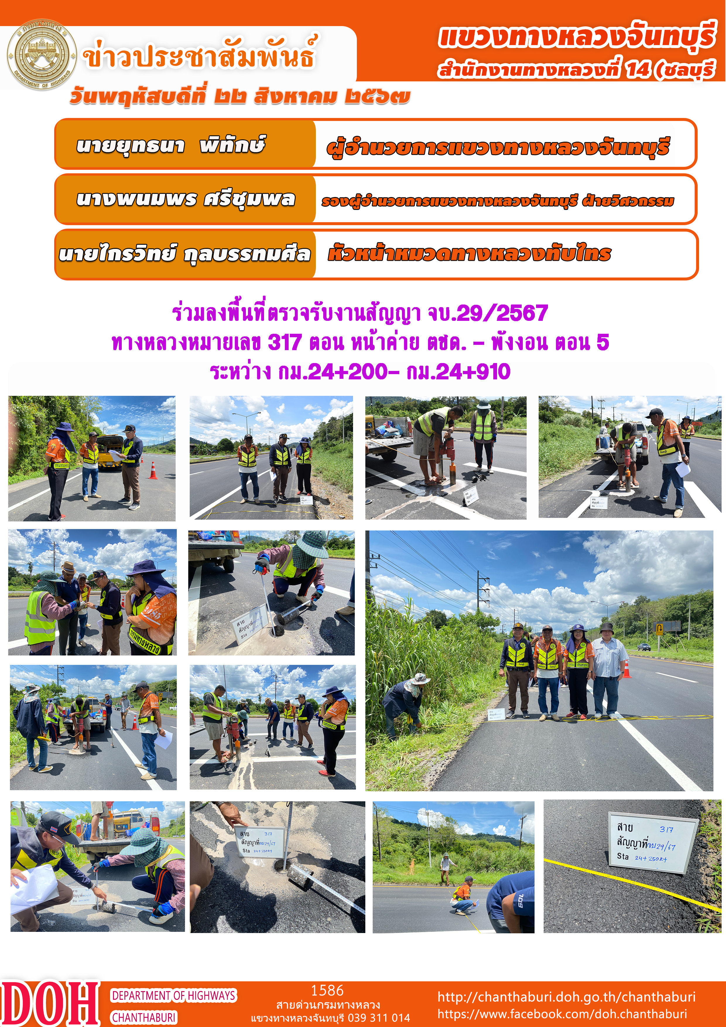 102 22/08/2567 แขวงทางหลวงจันทบุรี ร่วมลงพื้นที่ตรวจรับงานสัญญา จบ.27/2567 ทางหลวงหมายเลข 317 ตอน หน้าค่าย ตชด. - พังงอน ตอน 2
