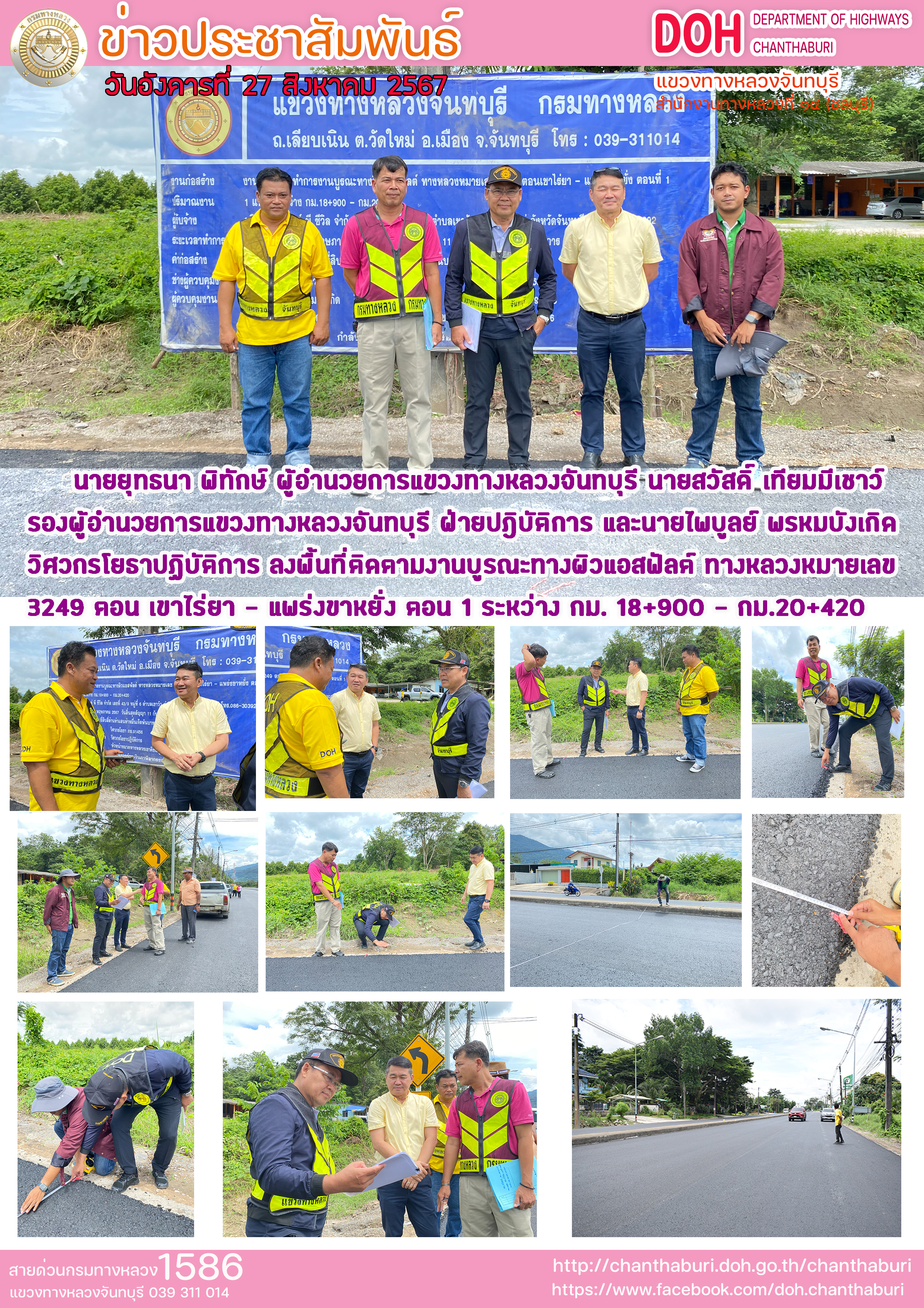 99 27/08/2567 แขวงทางหลวงจันทบุรี ลงพื้นที่ติดตามงานบูรณะทางผิวแอสฟัลต์ ทางหลวงหมายเลข3249 ตอน เขาไร่ยา - แพร่งขาหยั่ง ตอน 1