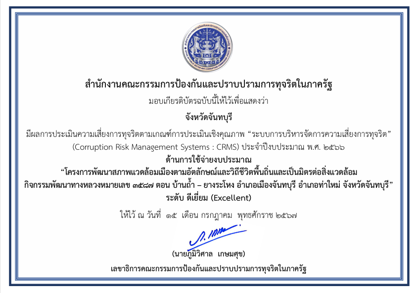96 28/08/2567 นางพนมพร ศรีชุมพล รองผู้อำนวยการแขวงทางหลวงจันทบุรี ฝ่ายวิศวกรรม เป็นตัวแทนรับมอบประกาศเกียรติบัตร
