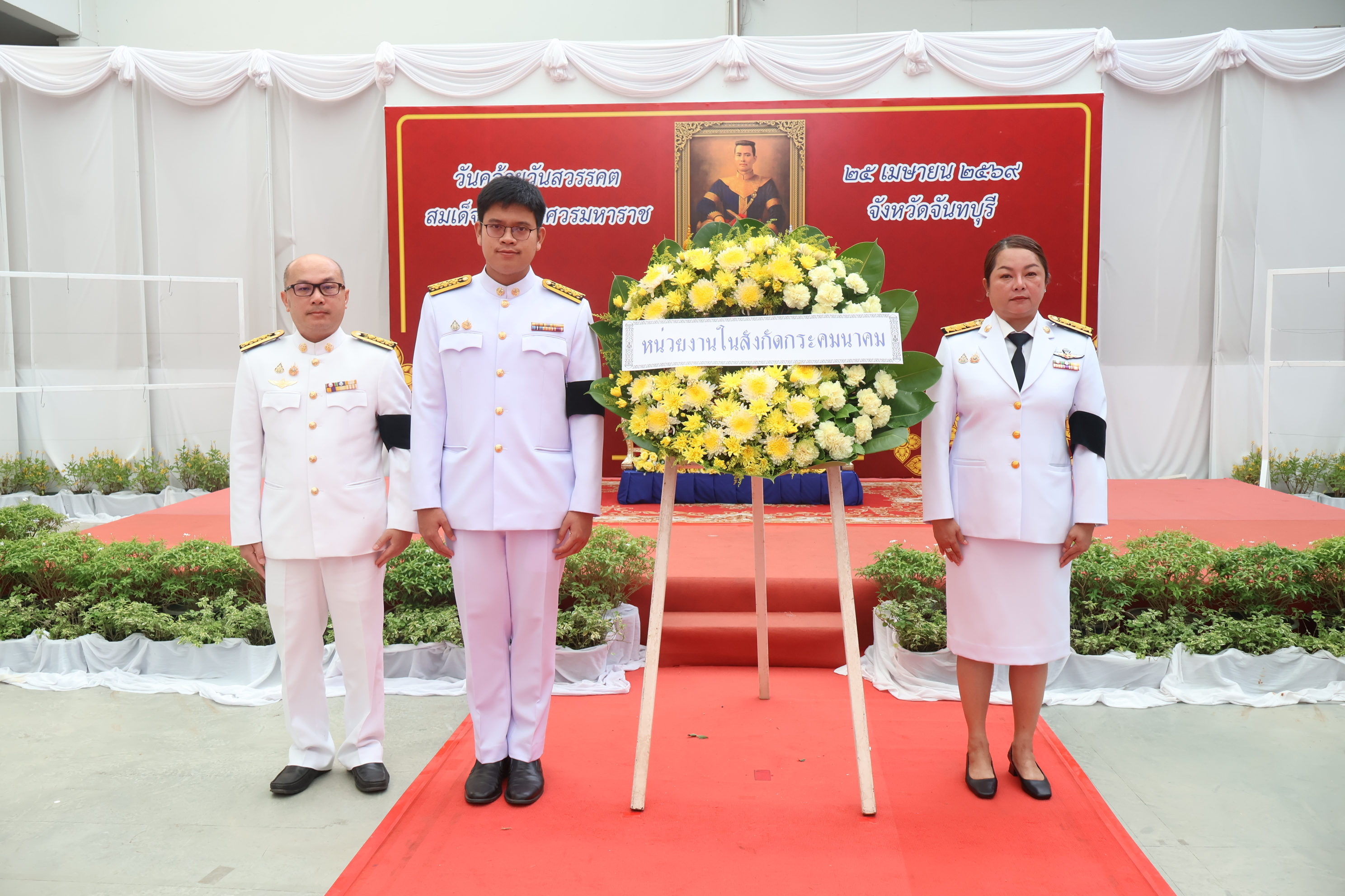 นายภูชิสส์ พันธรัตน์ วิศวกรโยธาปฎิบัติการ พร้อมด้วย ข้าราชการในสังกัด ขนส่งจังหวัดจันทบุรี , แขวงทางหลวงชนบทจันทบุรี ,สำนักงานพัฒนาและบำรุงรักษาทางน้ำที่ ๕ , สำนักงานเจ้าท่าภูมิภาคสาขาจังหวัดจันทบุรี เข้าร่วมพิธีวางพวงมาลาถวายราชสักการะ และพิธีถวายราชสดุดี เนื่อง ใน “วันคล้ายวันสวรรคตสมเด็จพระนเรศวรมหาราช” ในวันศุกร์ที่ 24 เมษายน 2569 ณ โถงแสงจันทร์ ชั้น 1 ศาลากลางจังหวัดจันทบุรี มีนายมนต์สิทธิ์ ไพศาลธนวัฒน์ ผู้ว่าราชการจังหวัดจันทบุรี เป็นประธานในพิธีฯ