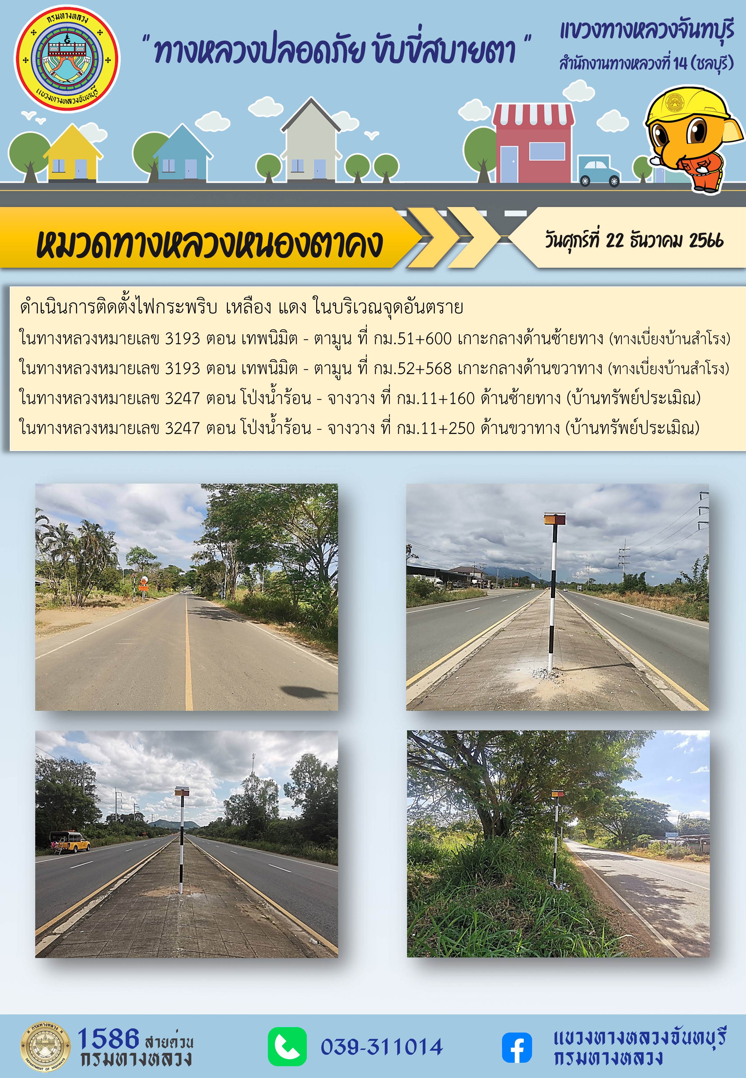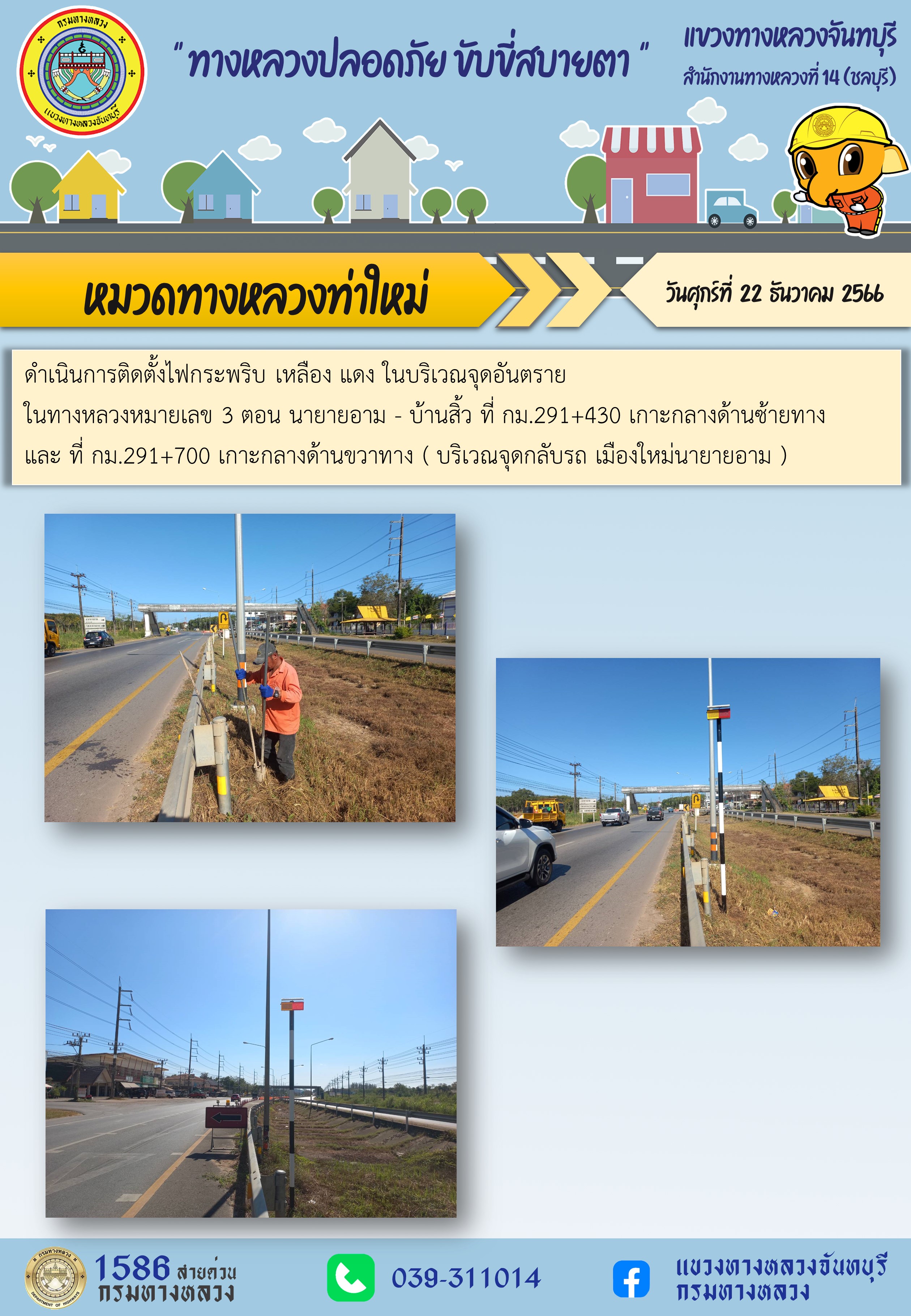 โดย หมวดทางหลวงท่าใหม่ดำเนินการติดตั้งไฟกระพริบ เหลือง แดง ในบริเวณจุดอันตราย