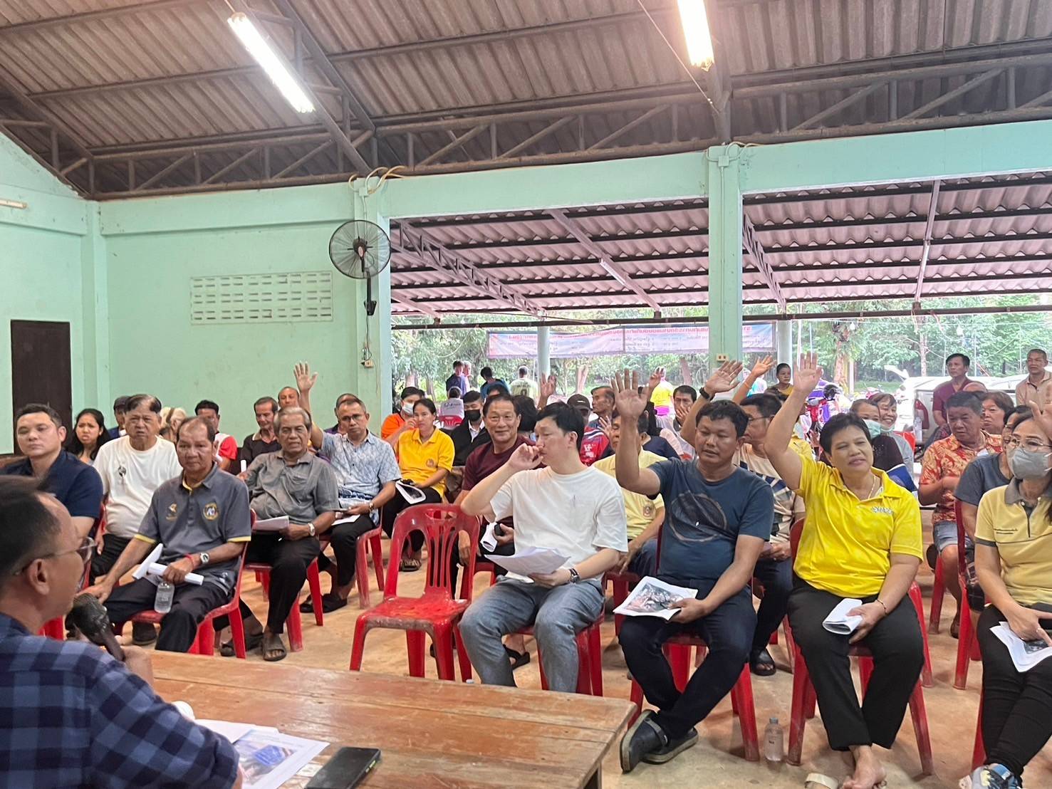 หมวดทางหลวงบางกะจะ ร่วมประชุมชี้แจง และรับฟังความคิดเห็นของประชาชนในพื้นที่โครงการ งานฟื้นฟูทางหลวง ทางหลวงหมายเลข 3493