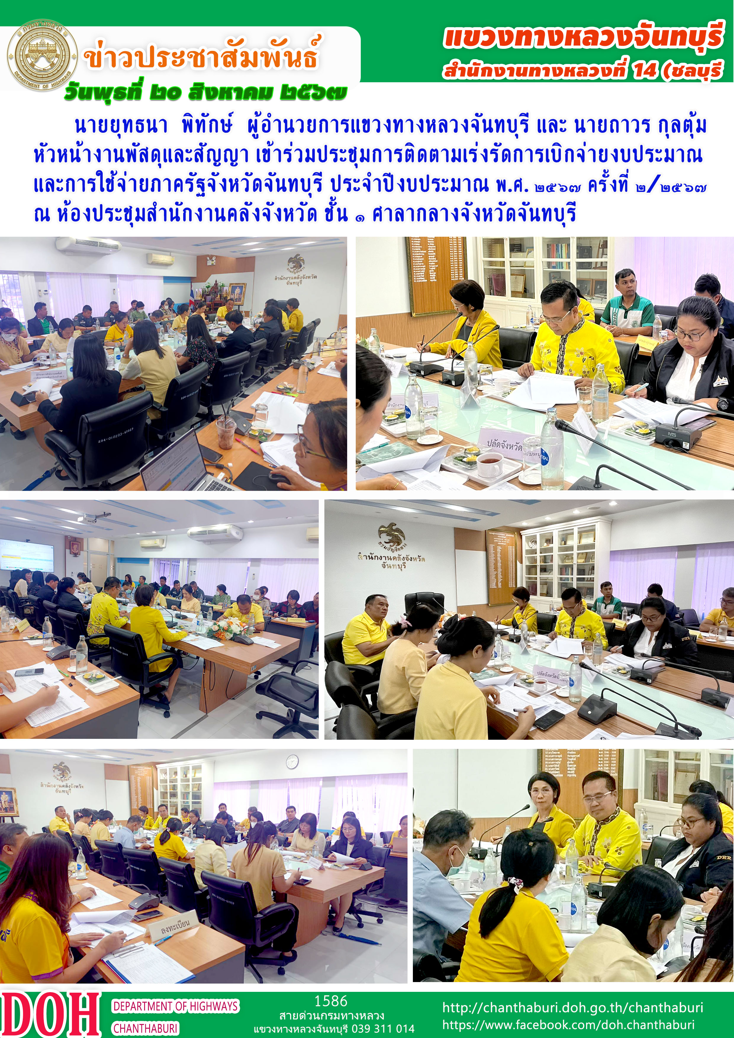 แขวงทางหลวงจันทบุรี เข้าร่วมประชุมการติดตามเร่งรัดการเบิกจ่ายงบประมาณและการใช้จ่ายภาครัฐจังหวัดจันทบุรี ประจำปีงบประมาณ พ.ศ. ๒๕๖๗ ครั้งที่ ๒/๒๕๖๗ ณ