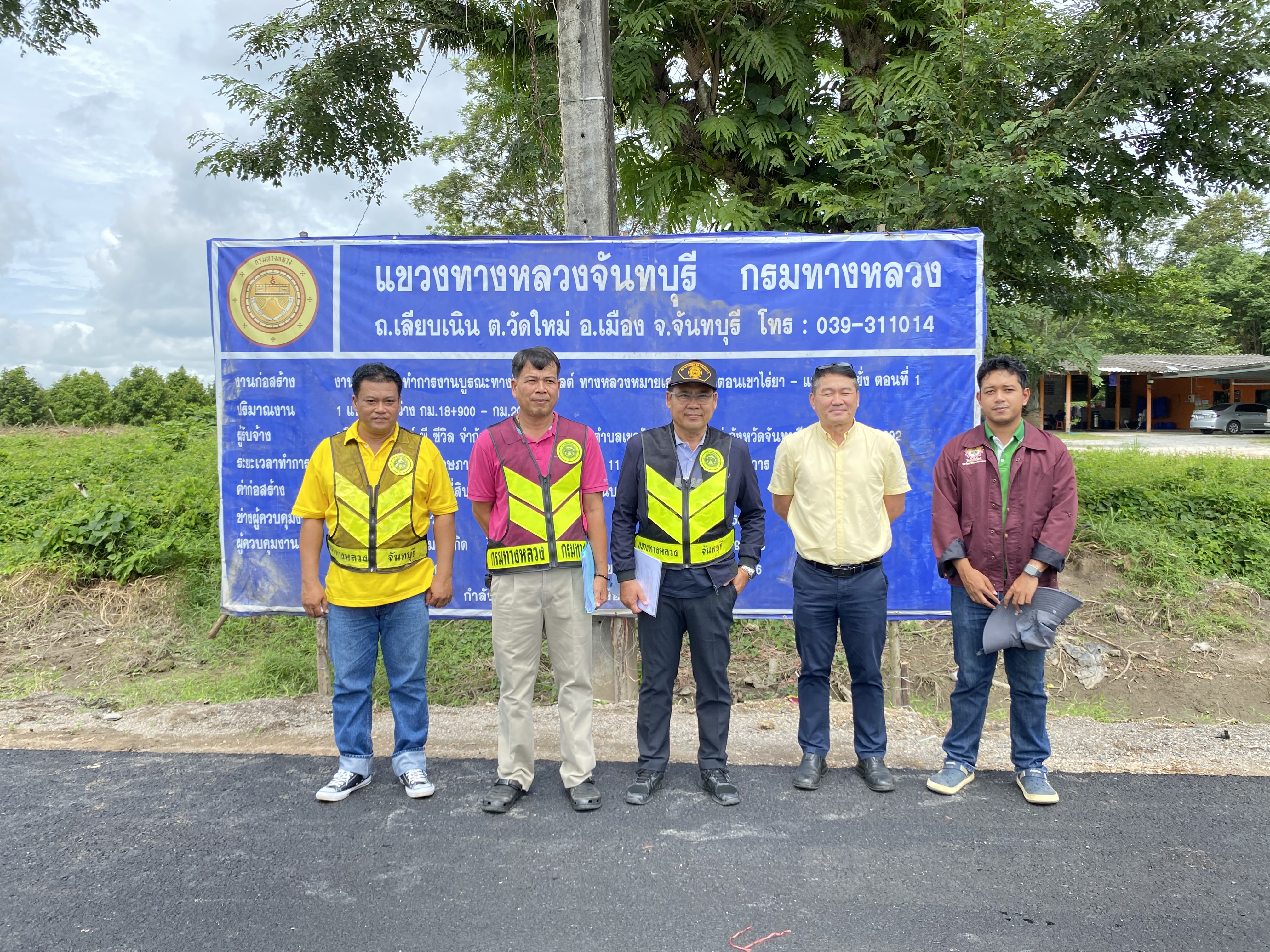 นายยุทธนา พิทักษ์ ผู้อำนวยการแขวงทางหลวงจันทบุรี นายสวัสดิ์ เทียมมีเชาว์ รองผู้อำนวยการแขวงทางหลวงจันทบุรี ฝ่ายปฎิบัติการ และนายไพบูลย์ พรหมบังเกิด วิศวกรโยธาปฏิิบัติการ ลงพื้นที่ติดตามงานบูรณะทางผิวแอสฟัลต์ ทางหลวงหมายเลข3249 ตอน เขาไร่ยา - แพร่งขาหยั่ง ตอน 1 ระหว่าง กม. 18+900 - กม.20+420