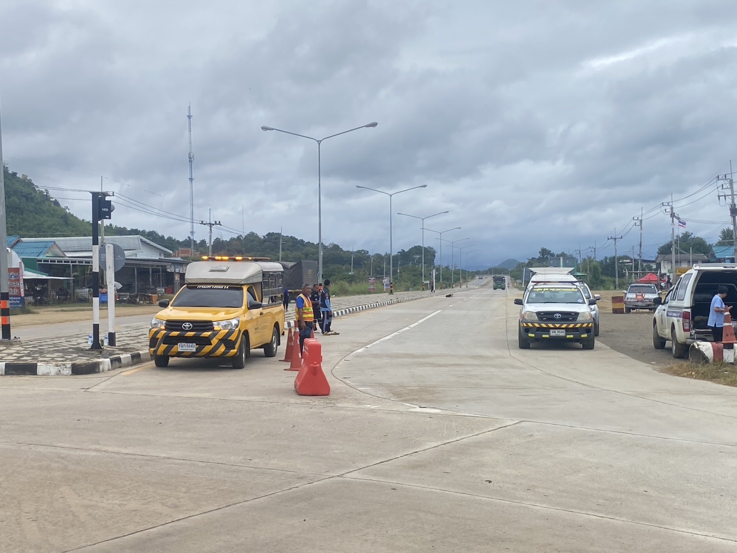 หมวดทางหลวงทับไทร แขวงทางหลวงจันทบุรี ร่วมกับ องค์การบริหารส่วนตำบลเทพนิมิต ชุด ชรบ. ดำเนินการอำนวยความสะดวกการจราจร