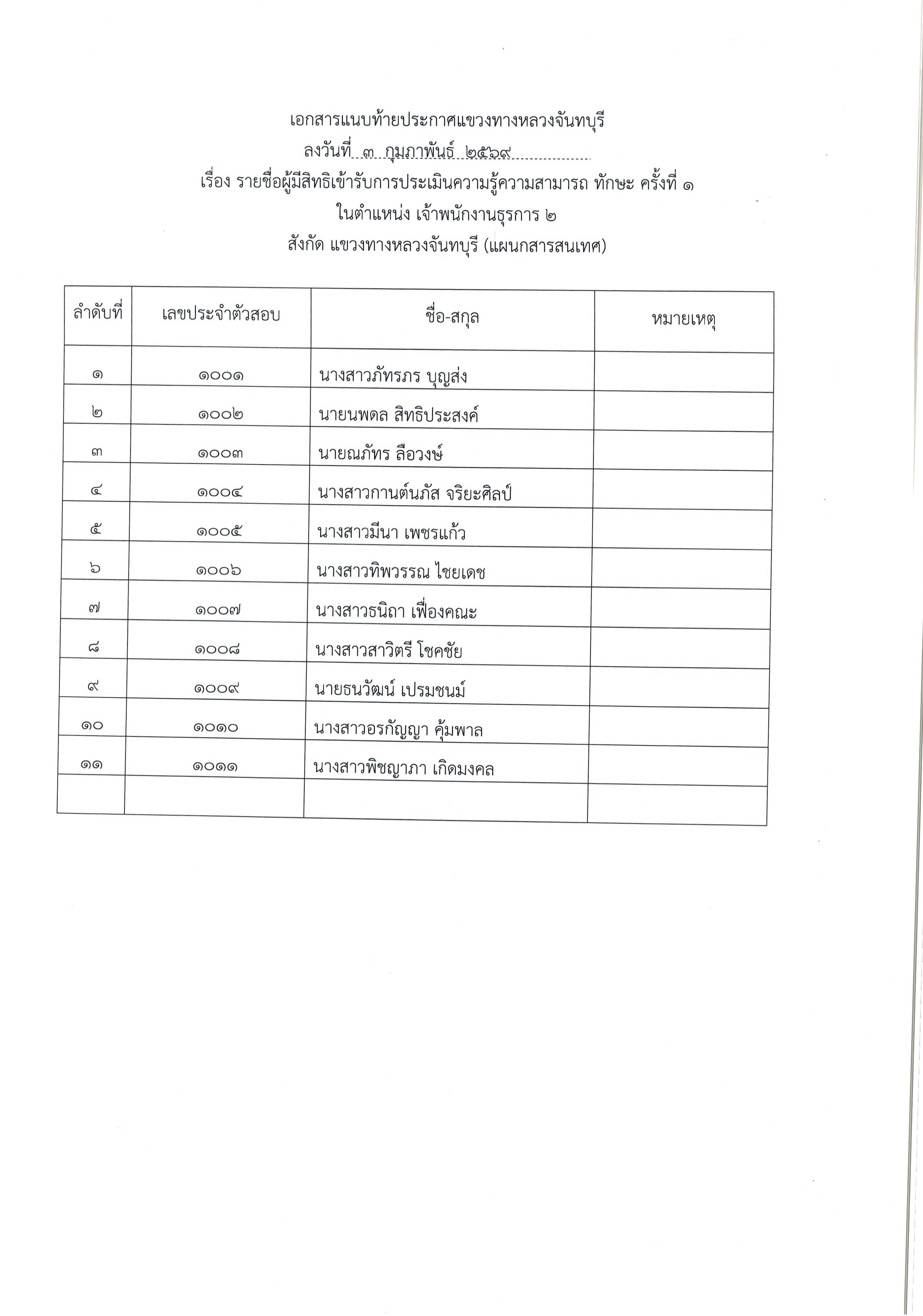 แต่งตั้งคณะกรรมการสอบคัดเลือก และประกาศรายชื่อผู้มีสิทธิสอบคัดเลือก เจ้าพนักงานธุรการ 2