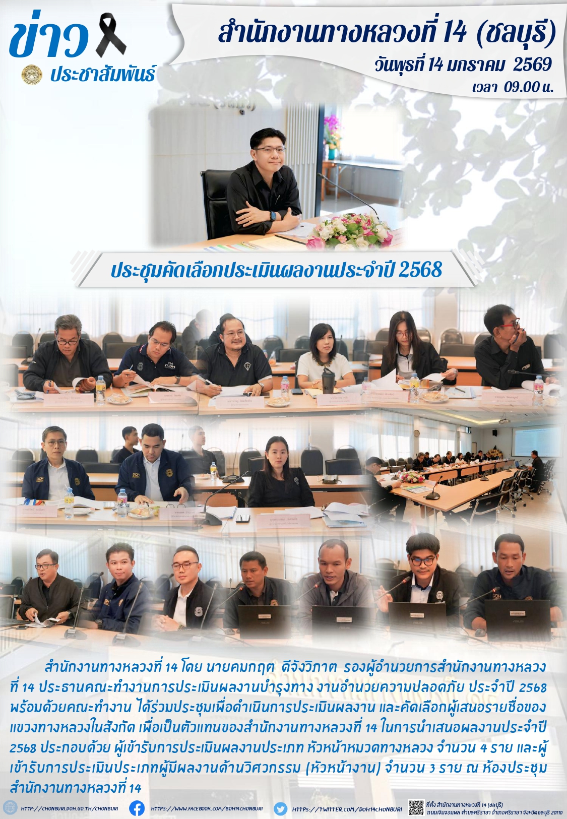 ประชุมเพื่อดำเนินการประเมินผลงาน และคัดเลือกผู้เสนอรายชื่อของแขวงทางหลวงในสังกัด เพื่อเป็นตัวแทนของสำนักงานทางหลวงที่ 14