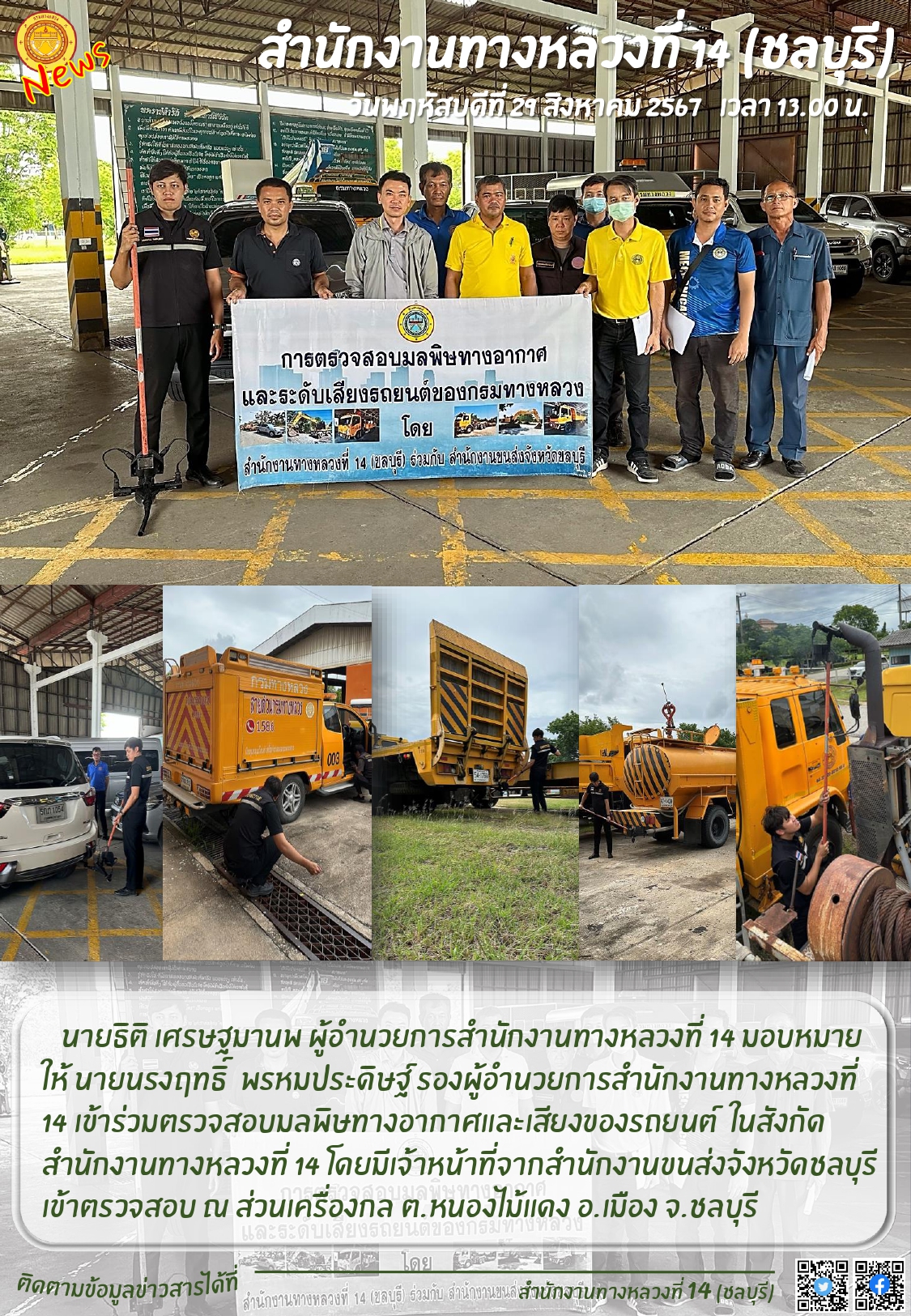 ตรวจสอบมลพิษทางอากาศ และเสียงของรถยนต์ ร่วมกับเจ้าหน้าที่ขนส่งจังหวัดชลบุรี