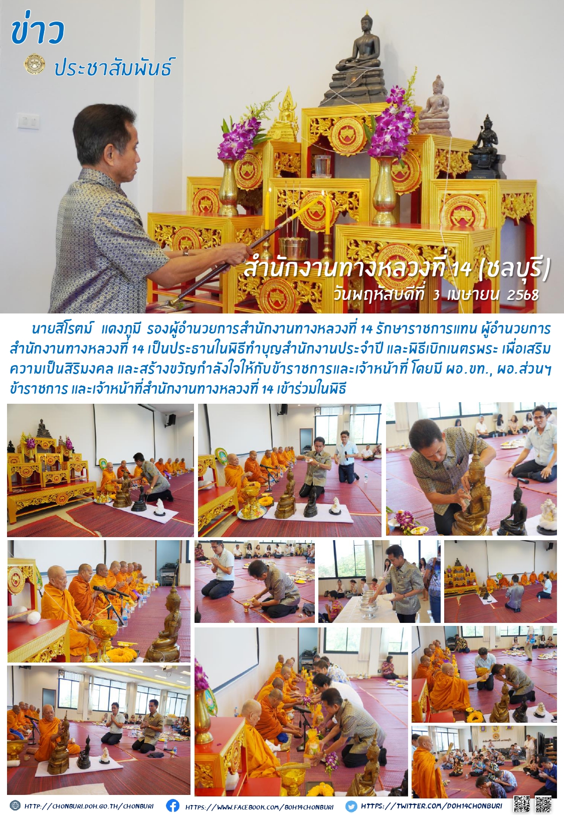 พิธีอัญเชิญพระพุทธมหามณีรัตนปฏิมากรพระแก้วมรกต และองค์พระวิษณุกรรม ขึ้นประดิษฐาน บริเวณหน้าสำนักงาน(เก่า) สำนักงานทางหลวงที่ 14