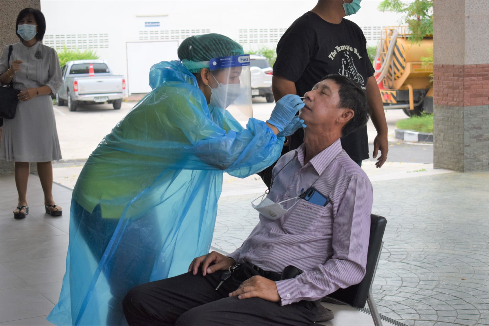โดยบริการเจลล้างมือ เครื่องตรวจวัดอุณหภูมิ และชุดตรวจ ATK ให้กับเจ้าหน้าที่ก่อนเข้าปฎิบัติงาน