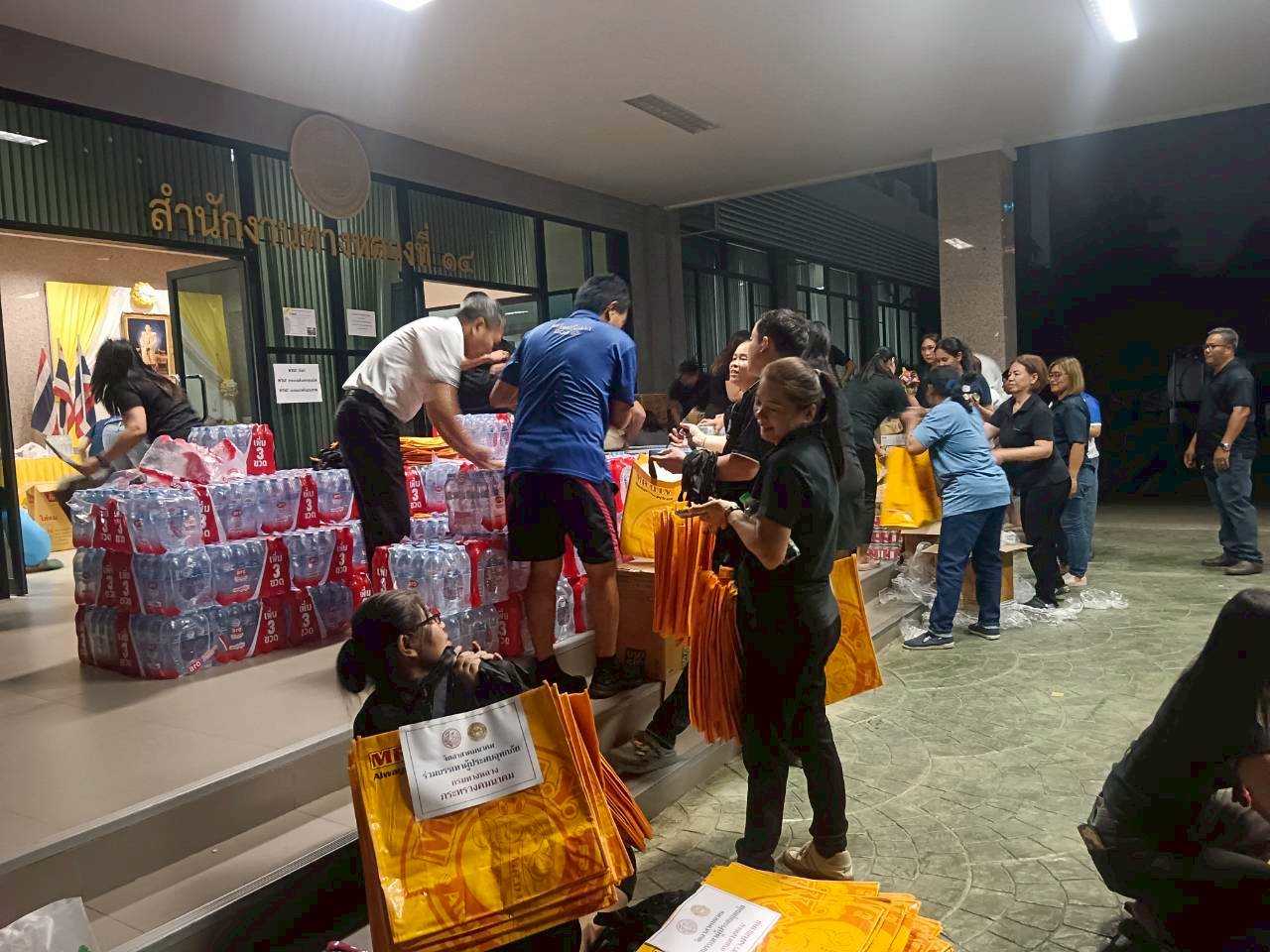 ได้ร่วมกับผู้บริหาร ข้าราชการ พนักงานและ ลูกจ้าง จัดทำถุงยังชีพ จำนวน 1,000 ชุด