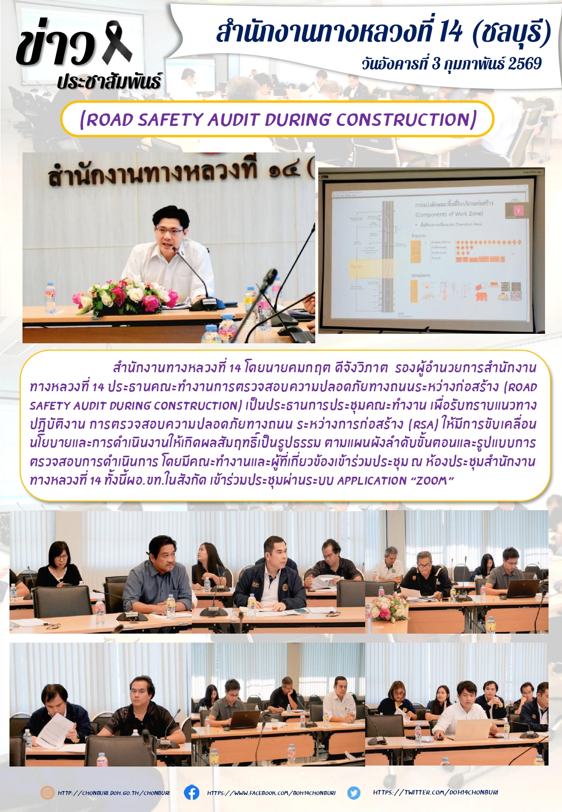 เป็นประธานการประชุมคณะทำงาน เพื่อรับทราบแนวทางปฏิบัติงาน การตรวจสอบความปลอดภัยทางถนน ระหว่างการก่อสร้าง (RSA)