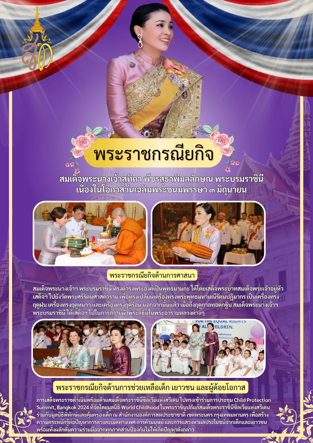 ข้อมูลภาพกิจกรรม : พระราชกรณียกิจสมเด็จพระนางเจ้าสุทิดา พัชรสุธาพิมลลักษณ พระบรมราชินี