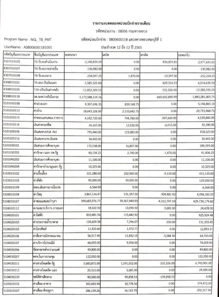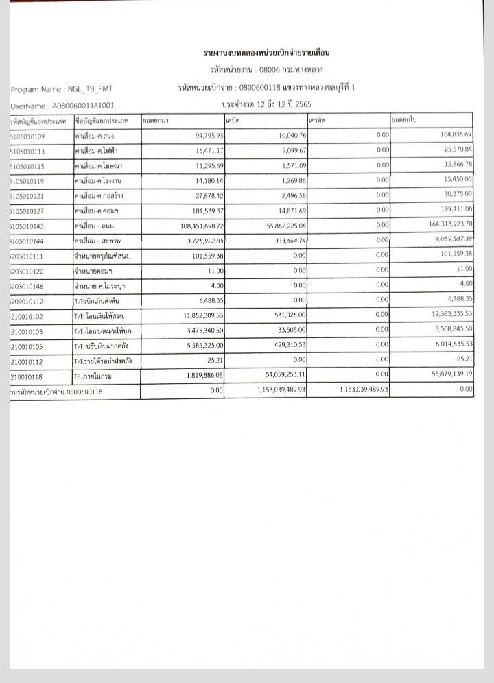 ข้อมูลข่าว : รายงานงบทดลองหน่วยเบิกจ่ายรายเดือน