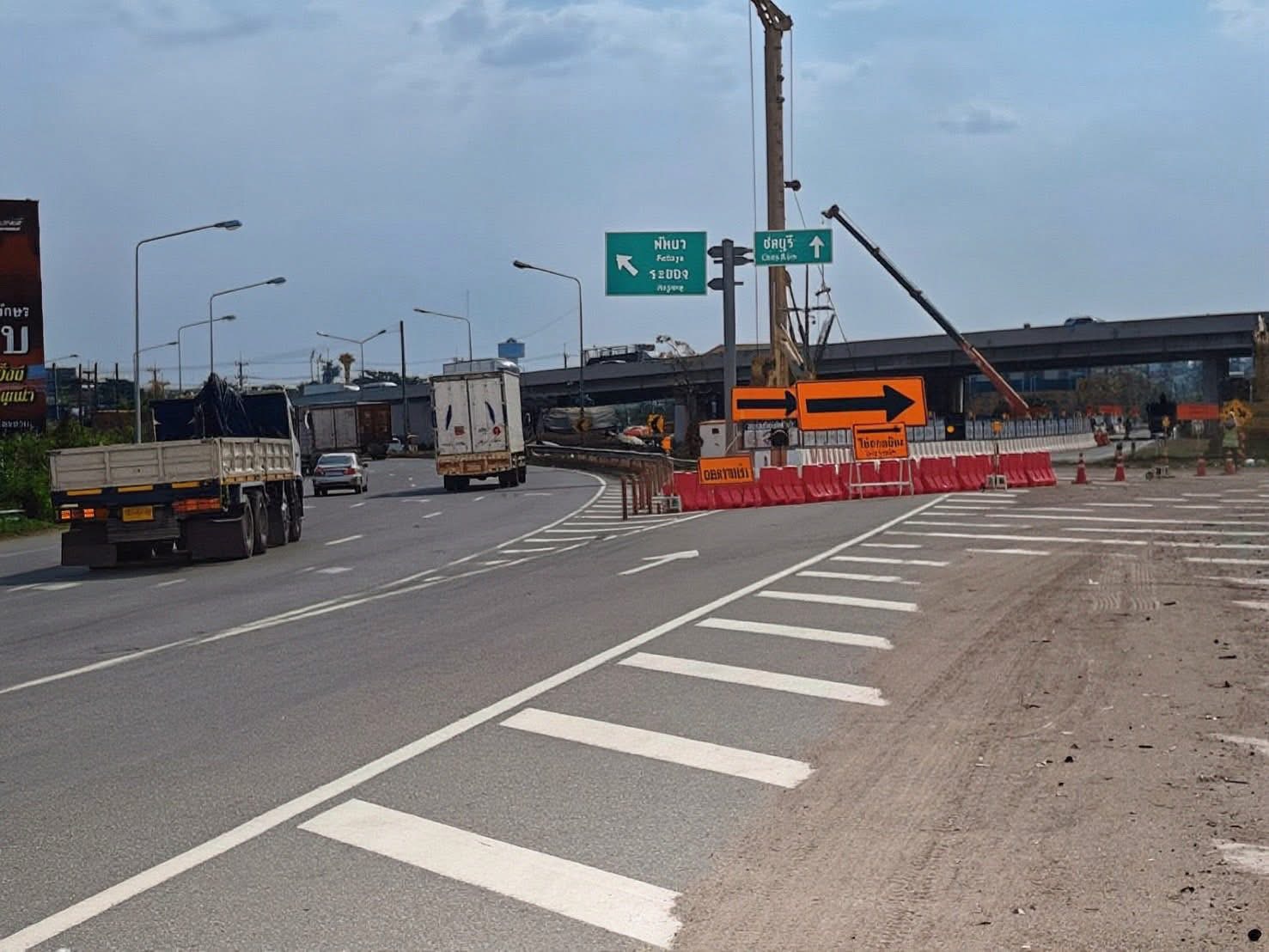 ปิดการจราจรเพื่อก่อสร้างสะพานยกระดับ ทางหลวงหมายเลข ๓๔ ตอน บางปะกง - หนองไม้เเดง บริเวณทางคู่ขนานลอดใต้สะพานหนองไม้เเดง ตั้งเเต่วันที่ ๑๘ กุมภาพันธ์ ๖๙ เป็นต้นไป