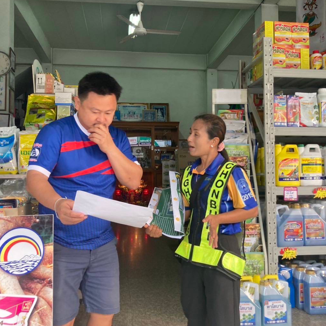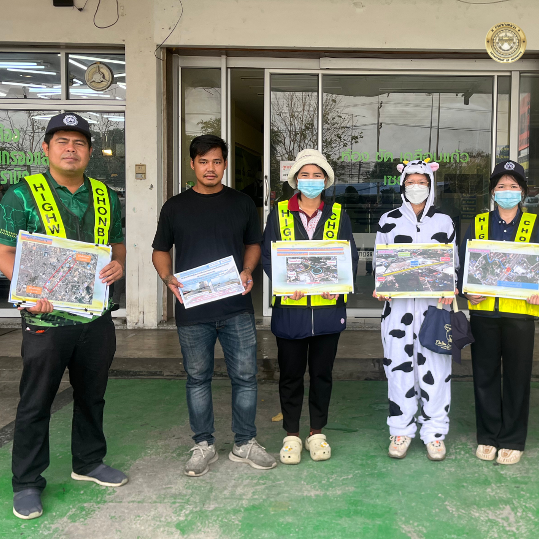 เจ้าหน้าที่หมวดทางหลวงบางละมุง ร่วมลงพื้นที่ ประชาสัมพันธ์ แจกใบปลิว เชิญชวนประชาชน