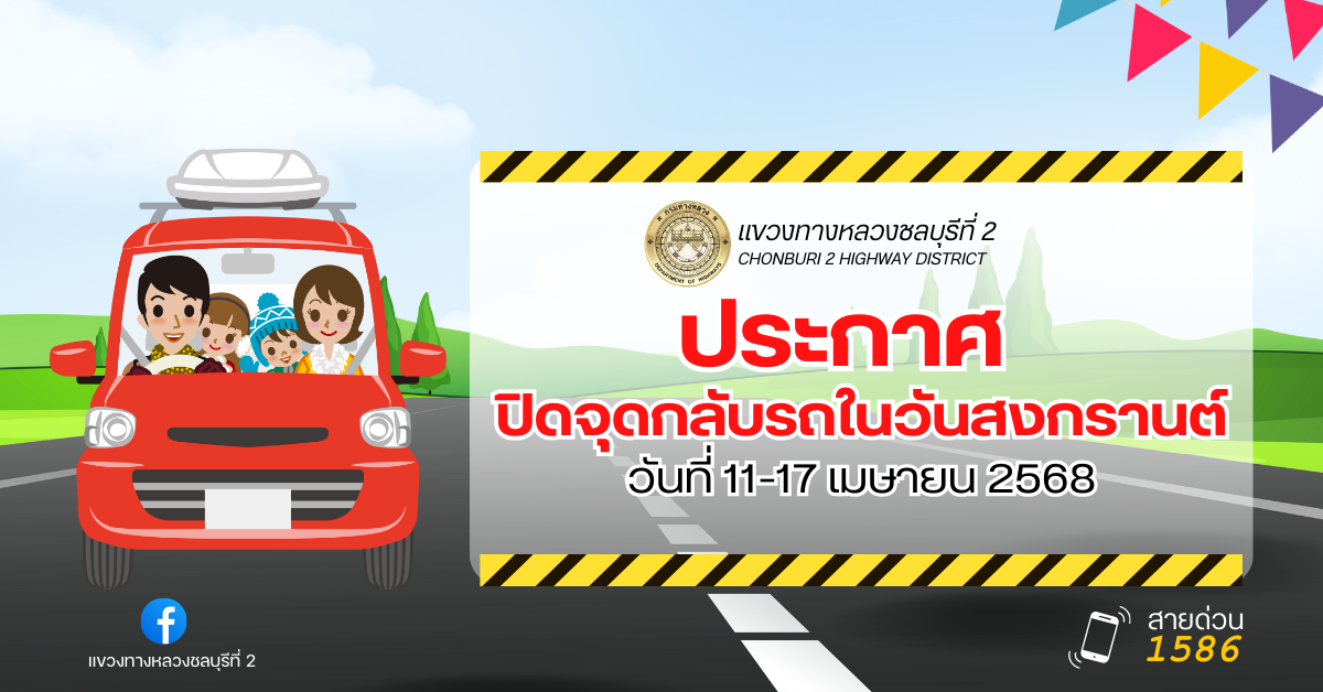 ประกาศแจ้งปิดจุดกลับรถชั่วคราว ช่วงเทศกาลสงกรานต์ และเฝ้าระวังช่วง 7 วันอันตราย