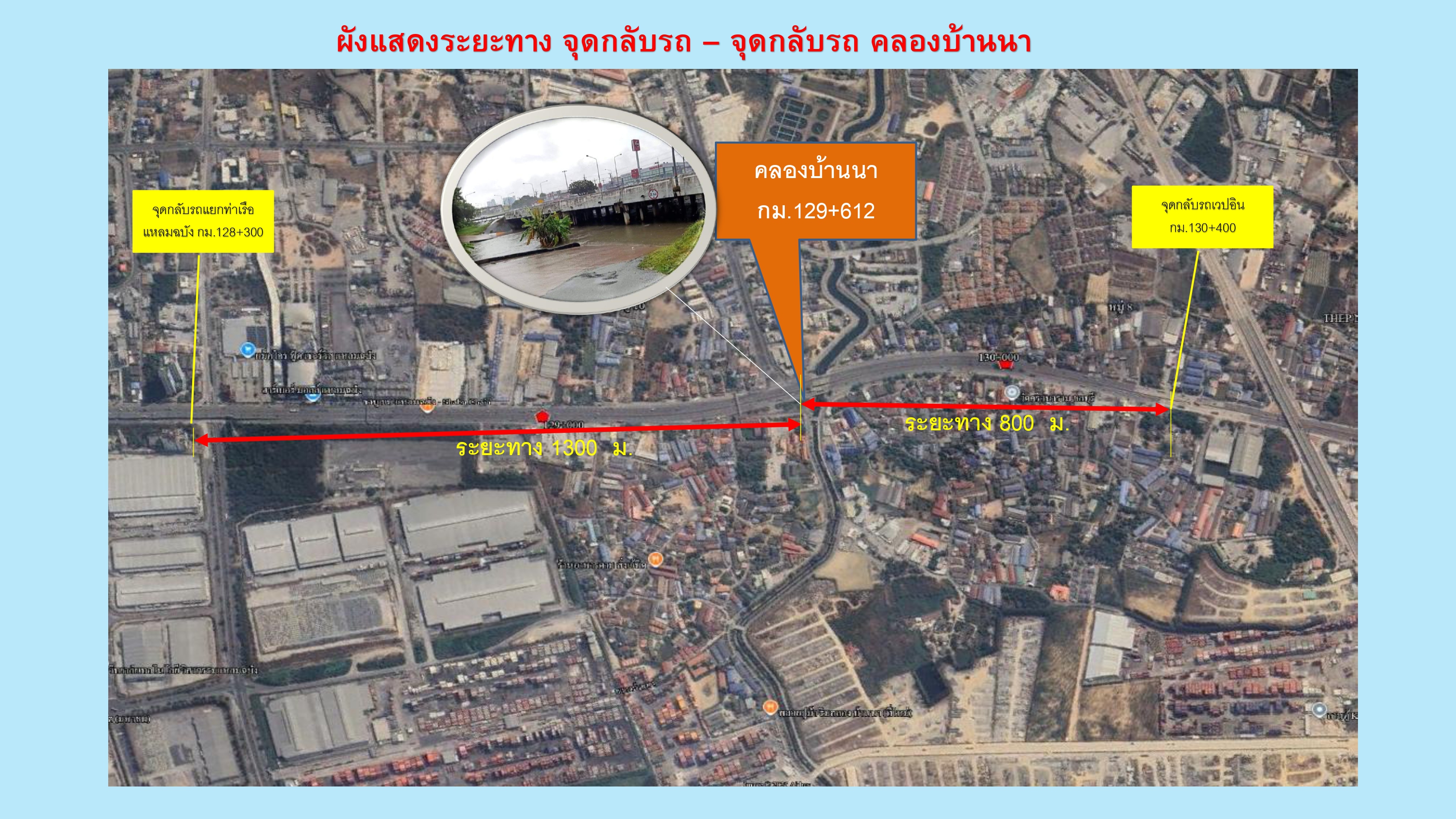 ประกาศปิดจุดกลับรถบริเวณสะพานข้ามคลองบ้านนา ทางหลวงหมายเลข 3 ถนนสุขุมวิท บริเวณ กม.129+612 ตั้งเเต่บัดนี้เป็นต้นไปจนกว่าน้ำจะลดระยะปลอดภัย